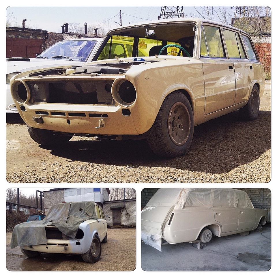 началось всё пару месяцев назад. отдали нашим друзьям по кузовному делу Антоше(его нива на заднем плане), и Владу(поистине настоящий гуру в лакокрасочных покрытиях). они давно занимаются покраской автомобилей, и с удовольствием берутся за интересные проекты. общими усилиями было решено загонять машину под лак, полностью обрабатывать кислотным грунтом. машину пока покрасили по стекла (увы карман не особо резиновый). но цвета подобраны практически идеально.