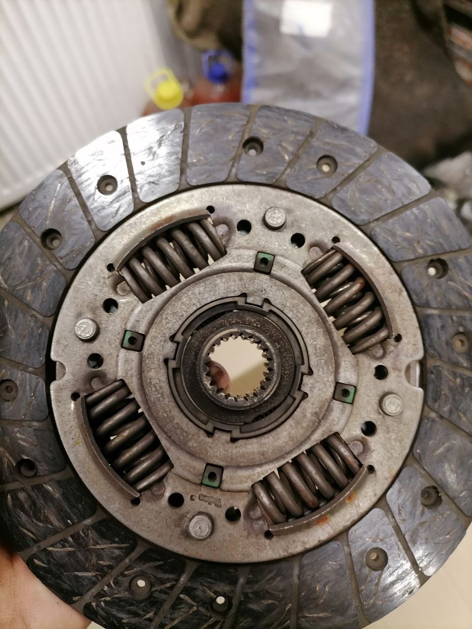 Ещё через пару недель удалось попасть к механику на повторное снятие коробки и замену сальника вместе с диском сцепления. Очень жаль конечно было наблюдать пропитанный маслом саксовский диск. Поставил обычный диск ВИС. Саксовский диск закинул дома в ведро и залил растворителем, лежит до сих пор, мб поможет. Подшипник саксовский тоже оказался не очень. При замене диска обнаружили люфт подшипника. От греха подальше поставили в металлической обойме КЕДР. Вообще ни раз слышал о том, что ЛЮК, что Валео, что САКС подшипники из комплекта лучше не ставить. На валео я убедился в этом сам, когда года 3 назад после замены сцепы подшипнику обломало вилкой ухо, в следствие чего мне пришлось на передаче заводить машину и таким образом выезжать с парковки. И случилось это спустя 3000км пробега после замены. Тут вероятно подшипник просто мог развалиться тысяч через 10. Осталось проверить люковский комплект сцепления.