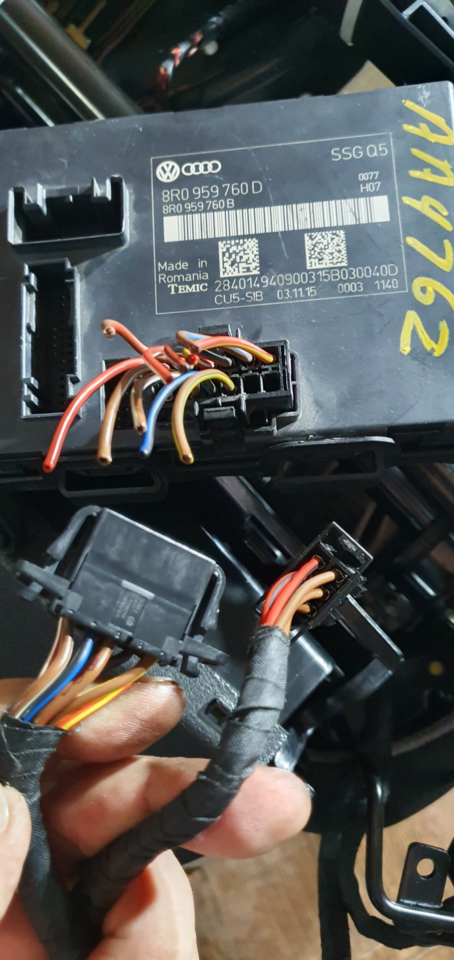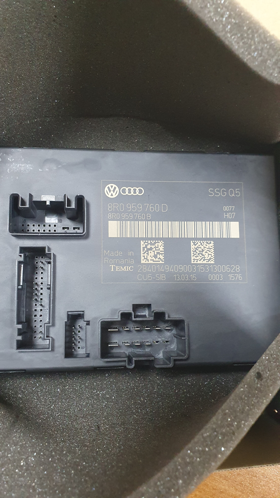 8R08959760D — 1 шт. — блок управления памяти сидения (идет для правого и левого переднего сидения) — можно также попробовать блоки от А5 и А4, но у меня 2 мотора не работало на блоке от А5, есть немного разница в распиновки, не стал проверять или ЗК не дает работаеть (так мне говорили, но я в это не очень верю), но суть ясна. В свое время удалось купить новый блок, который даже не стоял на авто))