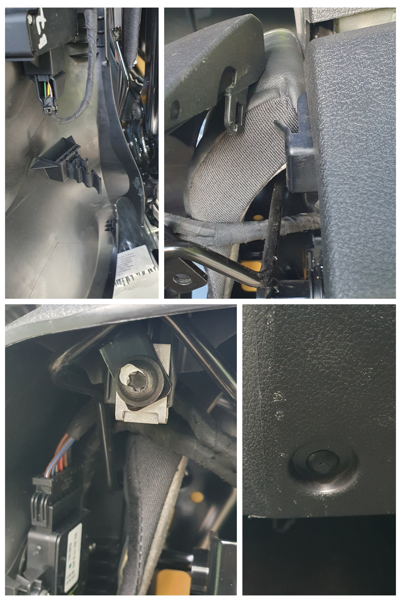 Затем, для удобства, я снял еще и ящик вещевой, он будет мешаться укладывать провода и ставить кронштейн для блока. Все просто, снимаем старый жгут с его креплениями, на место ставим уже новый, все крепления по месту прокладки, ошибиться трудно)) Ставим кронштейн, в него блок управления памяти сидения и подключаем все разъемы.