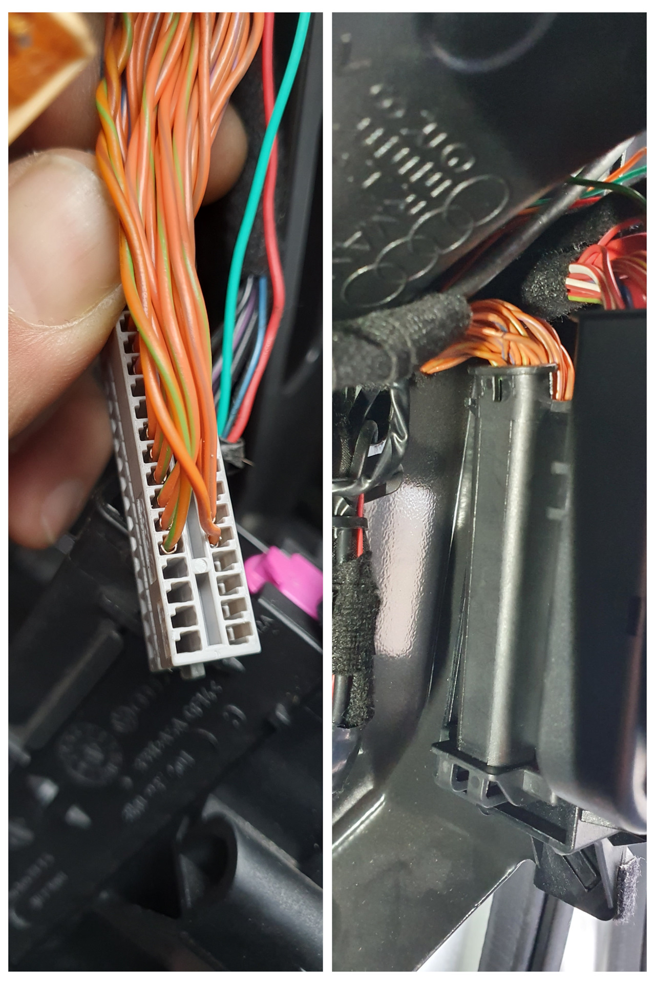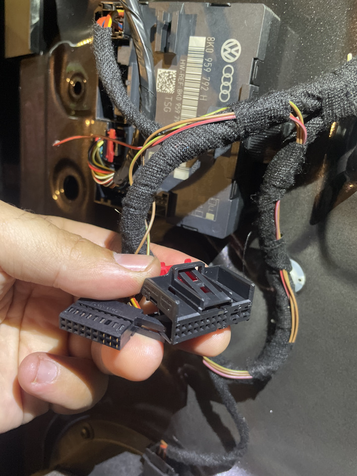 После этой работы у нас же теперь новый блок кнопок управления имеет новый разъем 8E0972112A и нам нужно протянуть новые провода управления до 32-контактного разъема блока сидения.