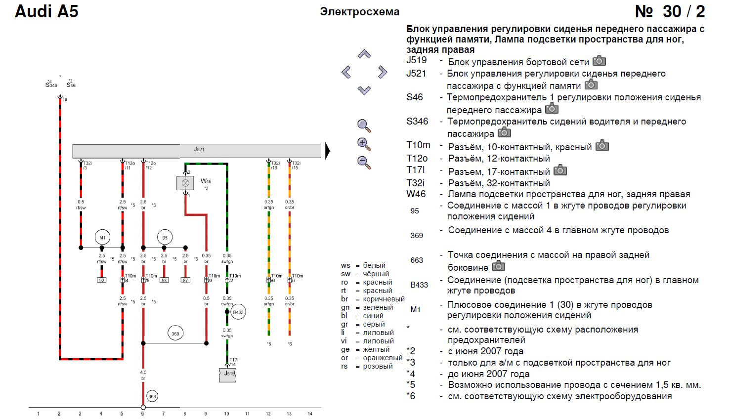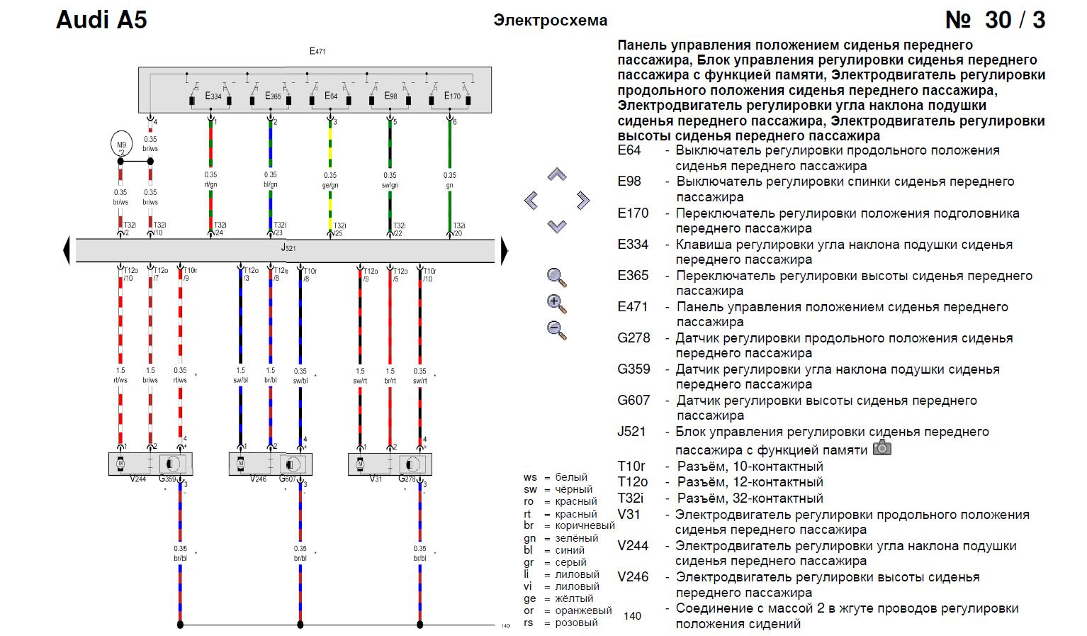 Первым делом я начал изучасть электросхемы по подключению, чего нам не хватает. Так как в Q5 никогда не было памяти пассажирского сидения, то смотрим от А5 двухдверки схему.
