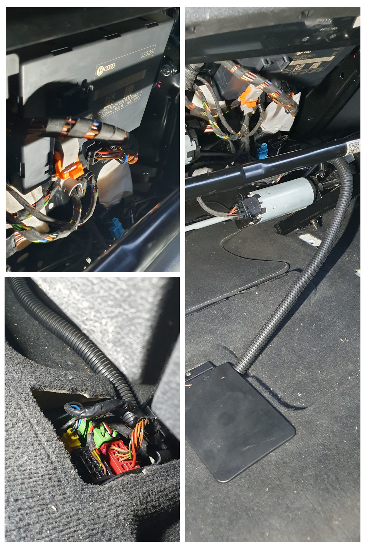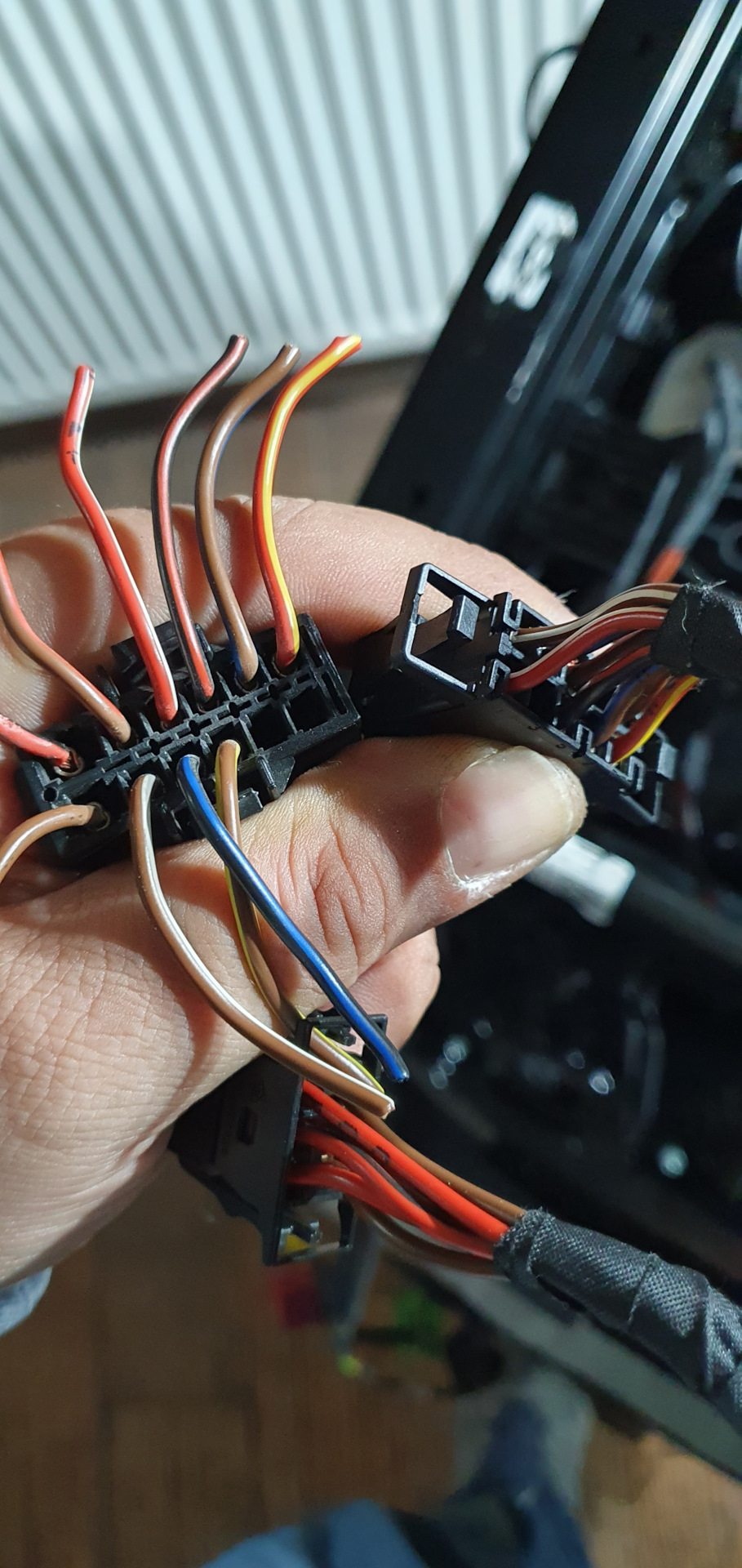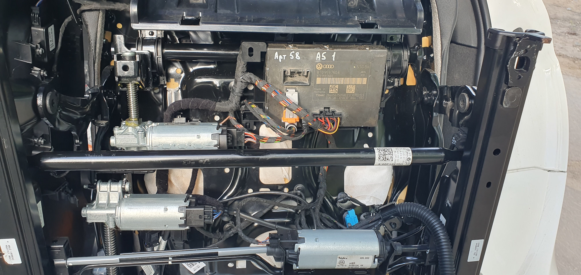 Протянув недостающие провода каншины, подключаю новую проводку к блоку и моторам сидения для проверки, также не забыв подключить новые кнопки управления 8K0959748B. Раньше питание подавалось на эти кнопки и через них уходило на моторы, теперь только управляющий сигнал дают эти кнопки на блок управления, а с него уже идут провода на моторы.