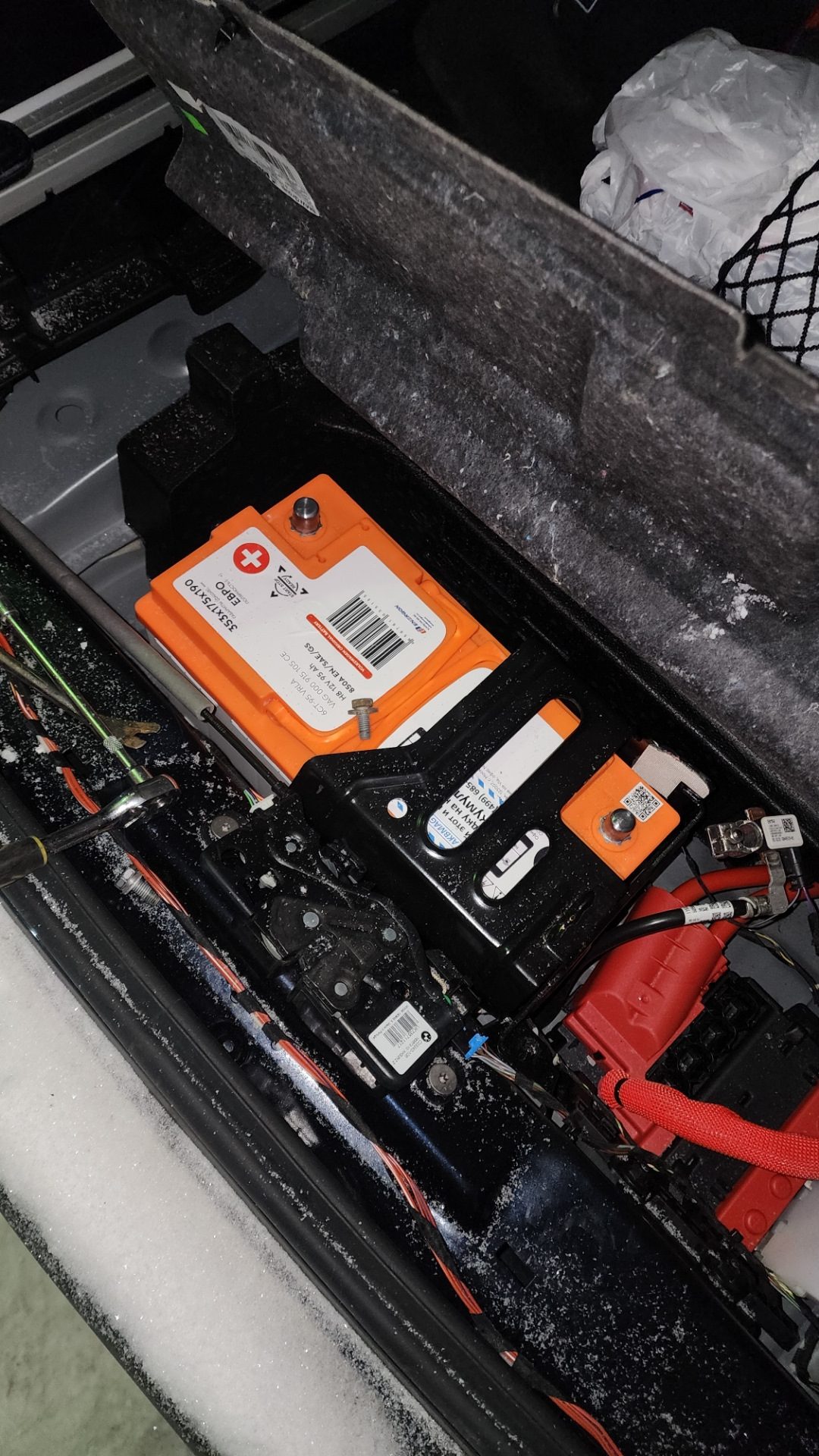 P.s. и кстати, да, очень удобно накидывать снятый аккумулятор через провода под капот и таким образом закрывать багажник и открывать перед установкой.