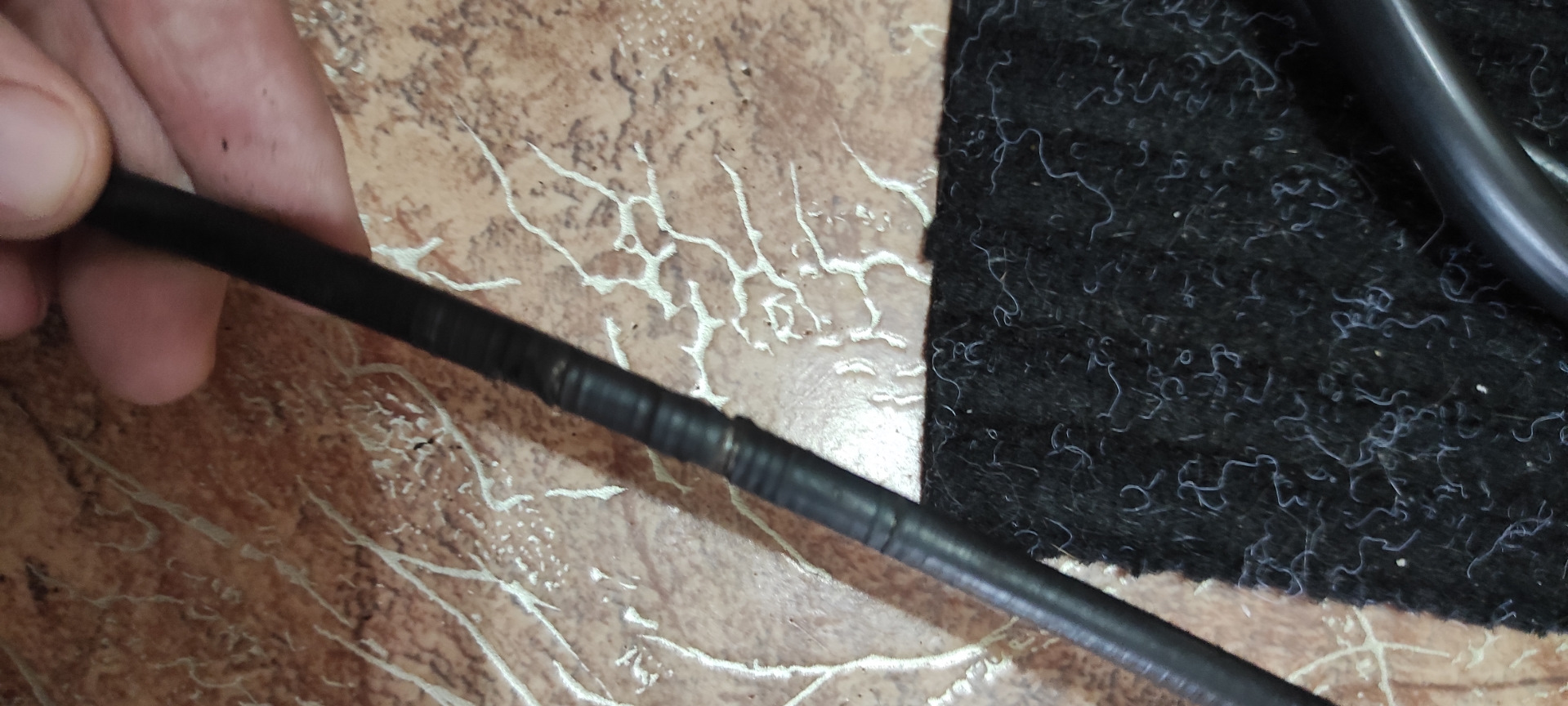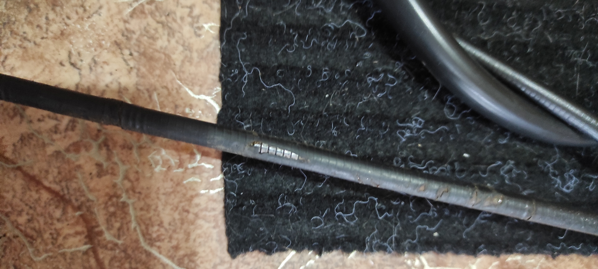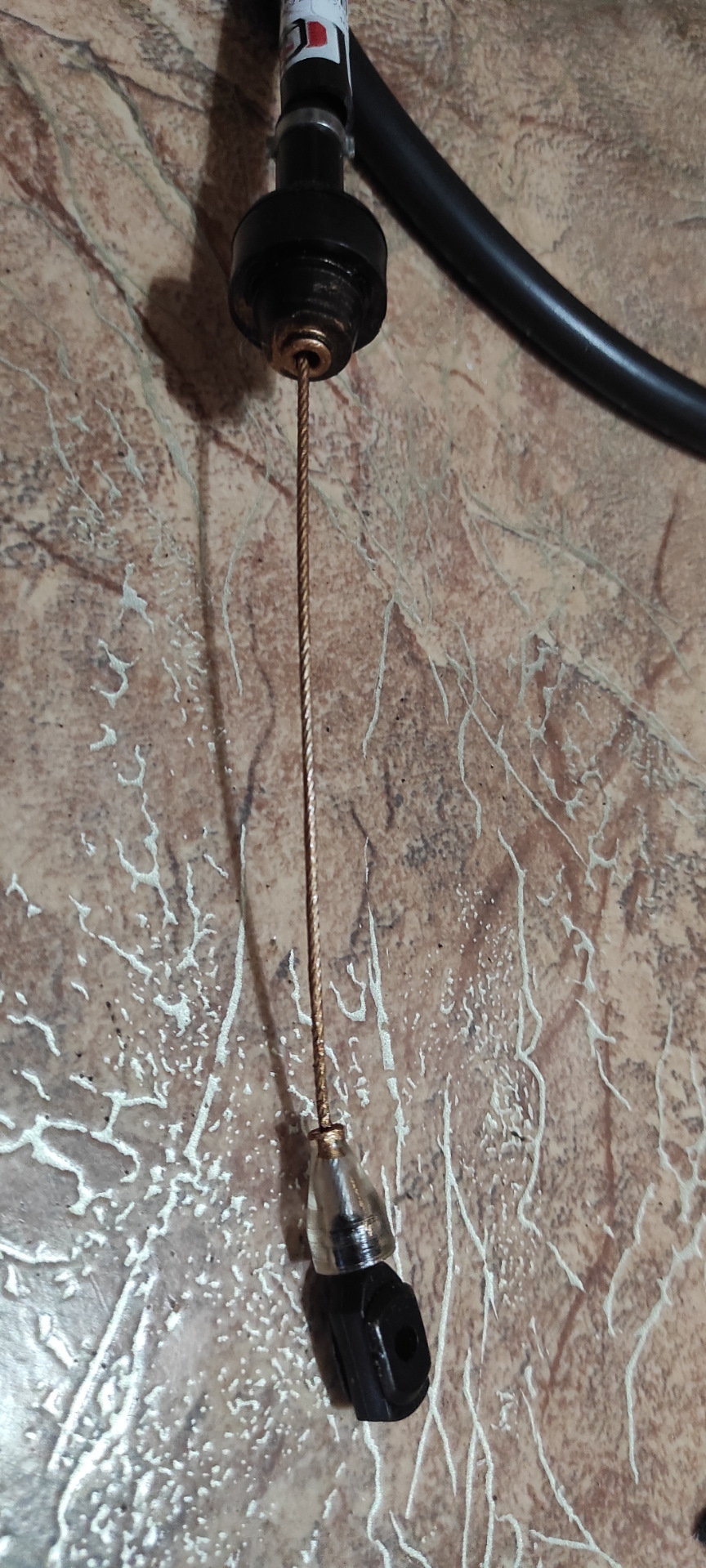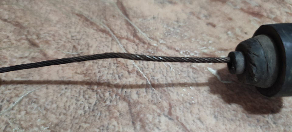 Сегодня стало потеплее всего -22 🥶одеваюсь потеплее и иду снимать трос, ели ели снял от самой педали, не удобно, холодно да ещё и резинка которая крепит трос к педали не поддается, но все же получилось, перед тем как пойти снимать старый трос, смазал запасной сначала силиконовой смазкой а потом медной.
