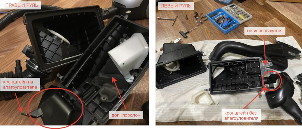 Проверил по схеме — да, тройник и втыкается в резонатор. У меня он есть, и на праворуком дорестайле резонатор был. Разница только в дополнительном влагоуловителе и поролоне на дне корпуса. Тем не менее, грязи было много, на прошлом иксе опыт показал, что нижнюю чашу раз в 3 года промыть совсем не лишнее.