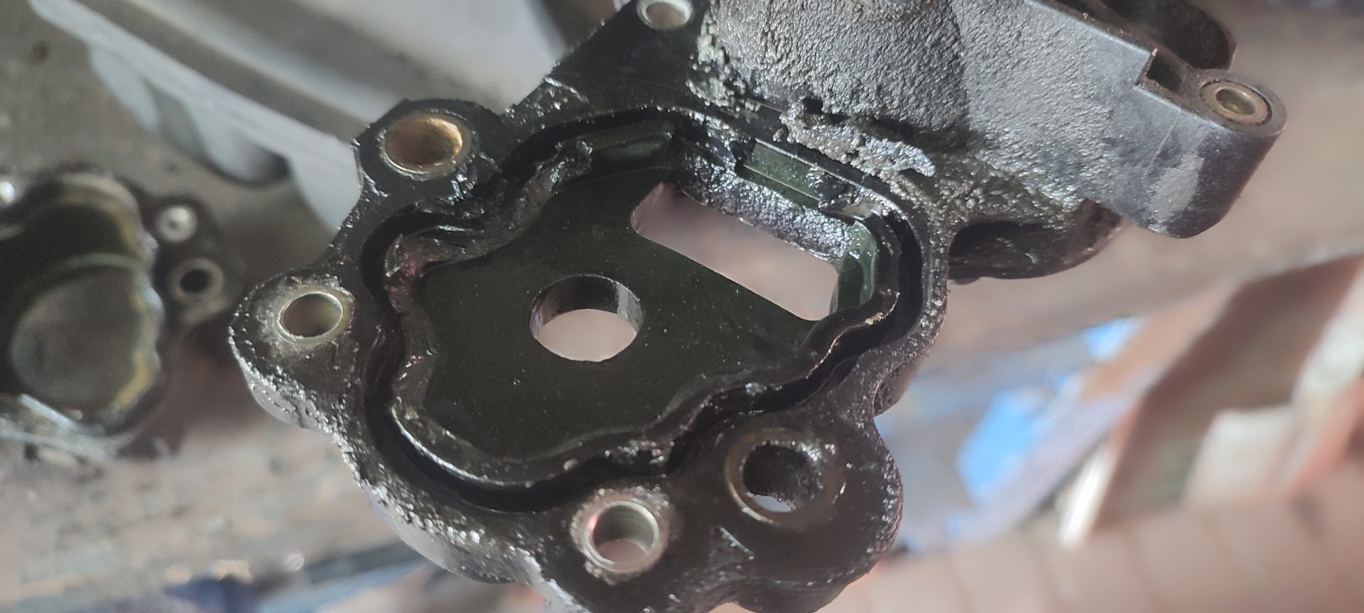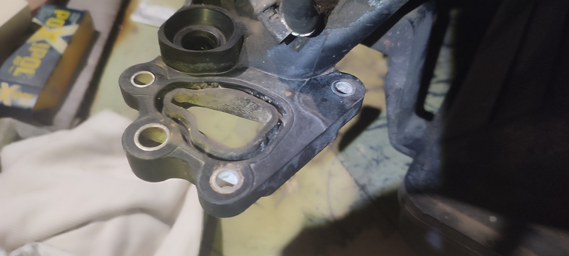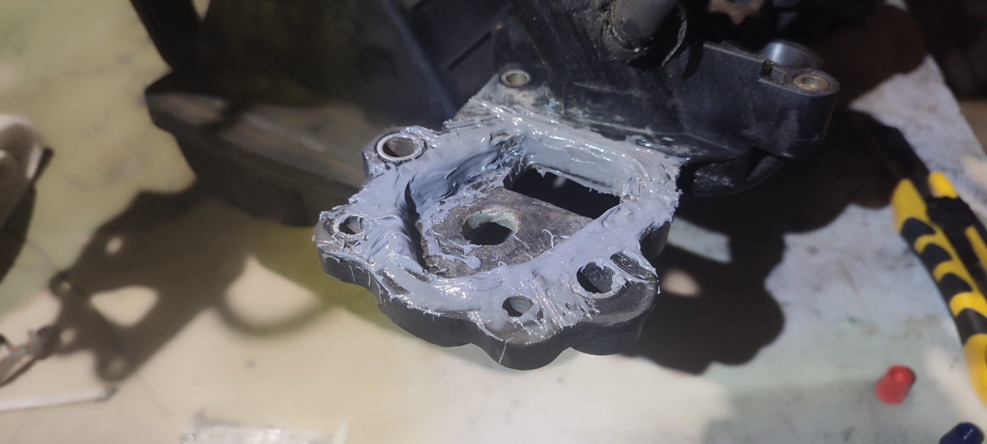 Вытаскиваем резинку — она нам больше не понадобится. Ломаем остатки внутреннего буртика. Зачищаем все, формируем нужную нам форму поксиполом. Шкурим, выводим плоскость. Далее ставим кроссовер на герметик графитовый Victor Reinz с обязательной сушкой в ночь с надеждой на то, что больше мы его снимать НЕ БУДЕМ!.