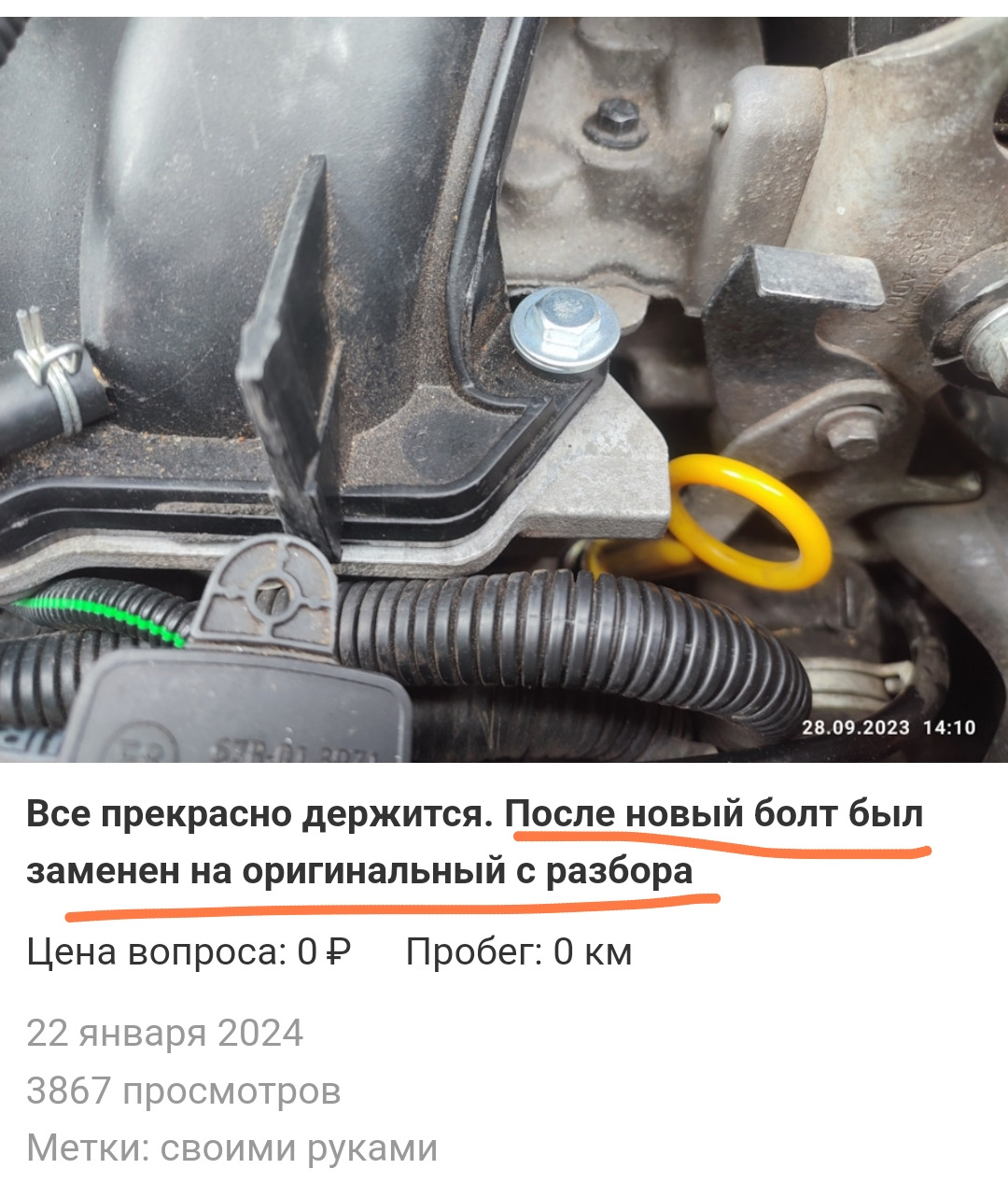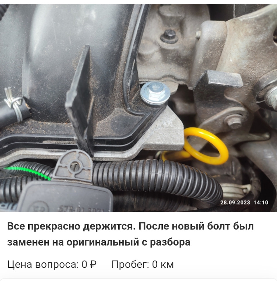 Всем привет🖐️🖐️🖐️, ещё летом когда я менял впускной ресивер и его прокладка…случайно обломили один болт, впускного коллектора…