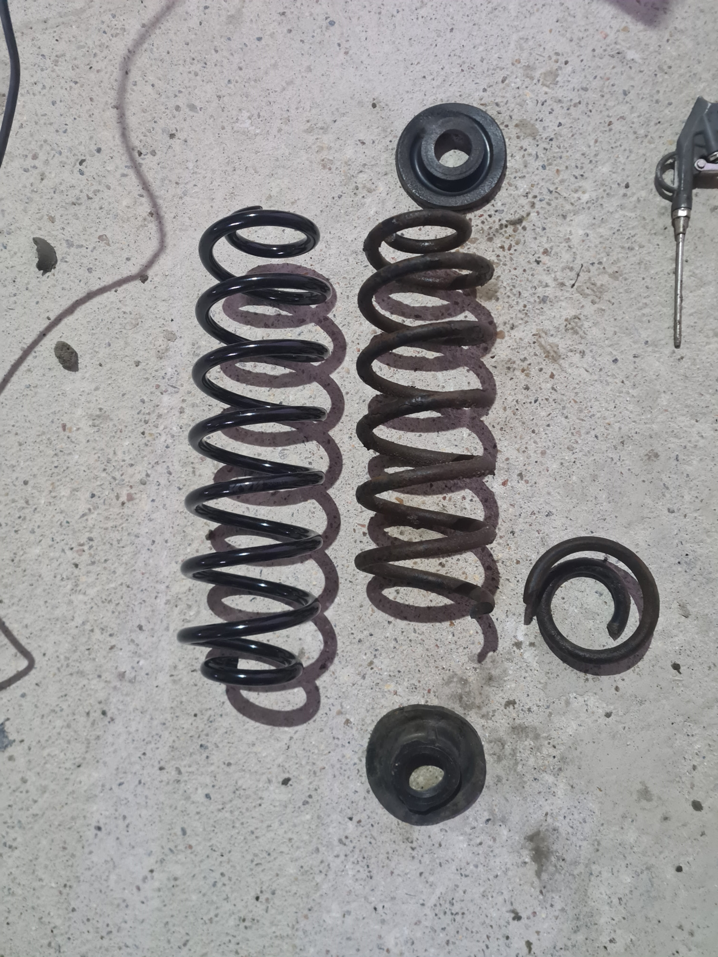 Заменил в очередной раз лопнувшие задние пружины, которые устанавливал в попыхах, когда перетряхал заднюю подвеску ЗДЕСЬ. Прошли отечественные не дорогие пружины до 70000 км. Качество отвратительное. Одна из пружин даже в двух местах лопнула и ломаются они не под последний виток, а чуть ли не посередине.