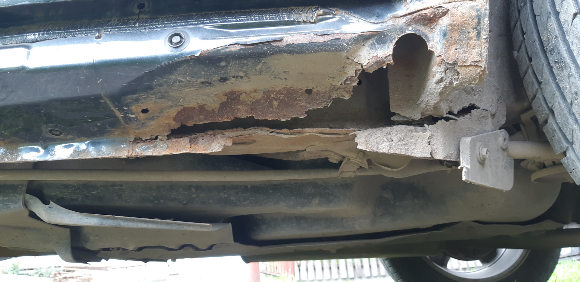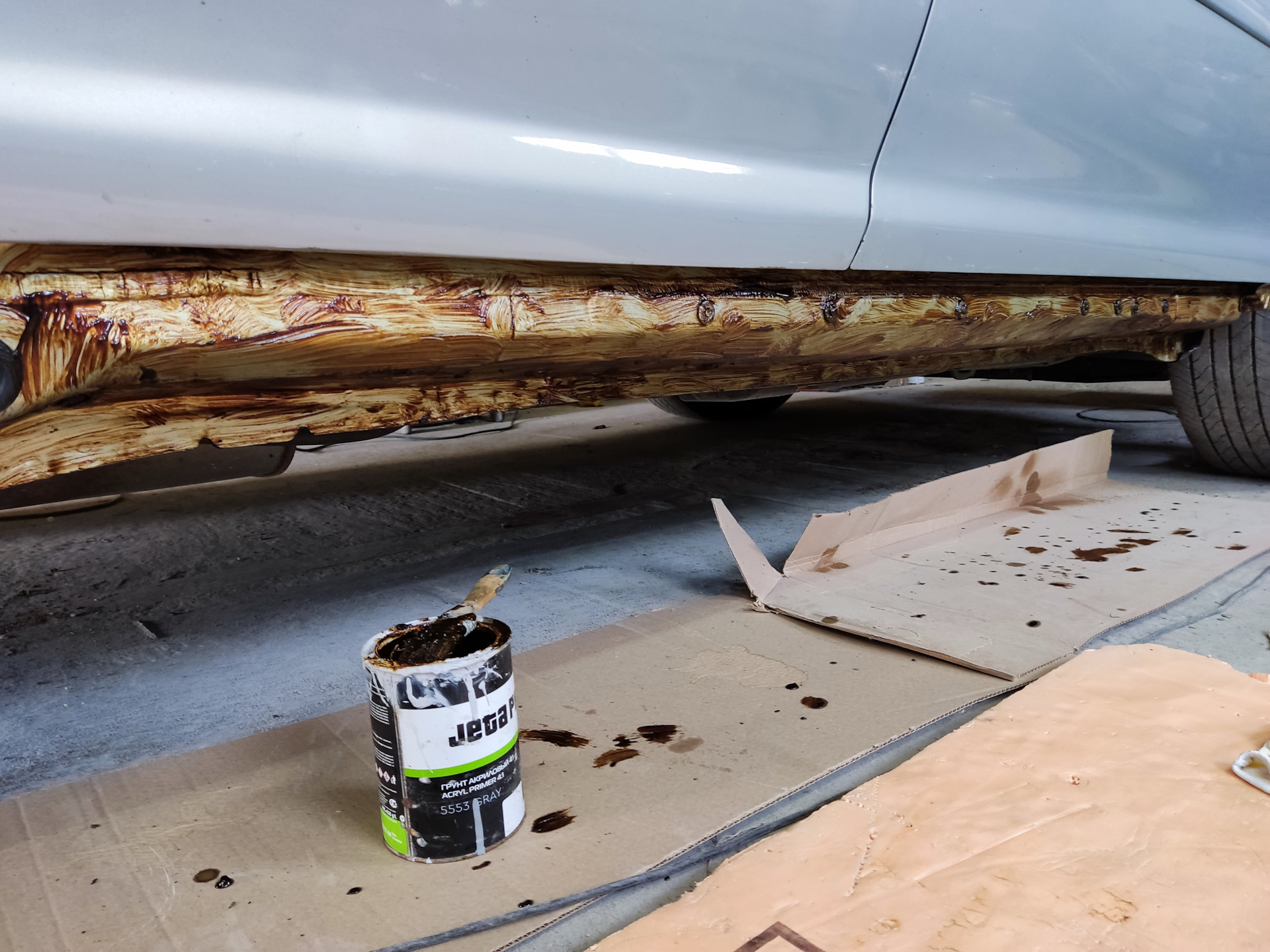 * Выровняли швы под порогами, которые были помяты наверно от неправильно установленных подпоров при подъёме машины на подъемнике