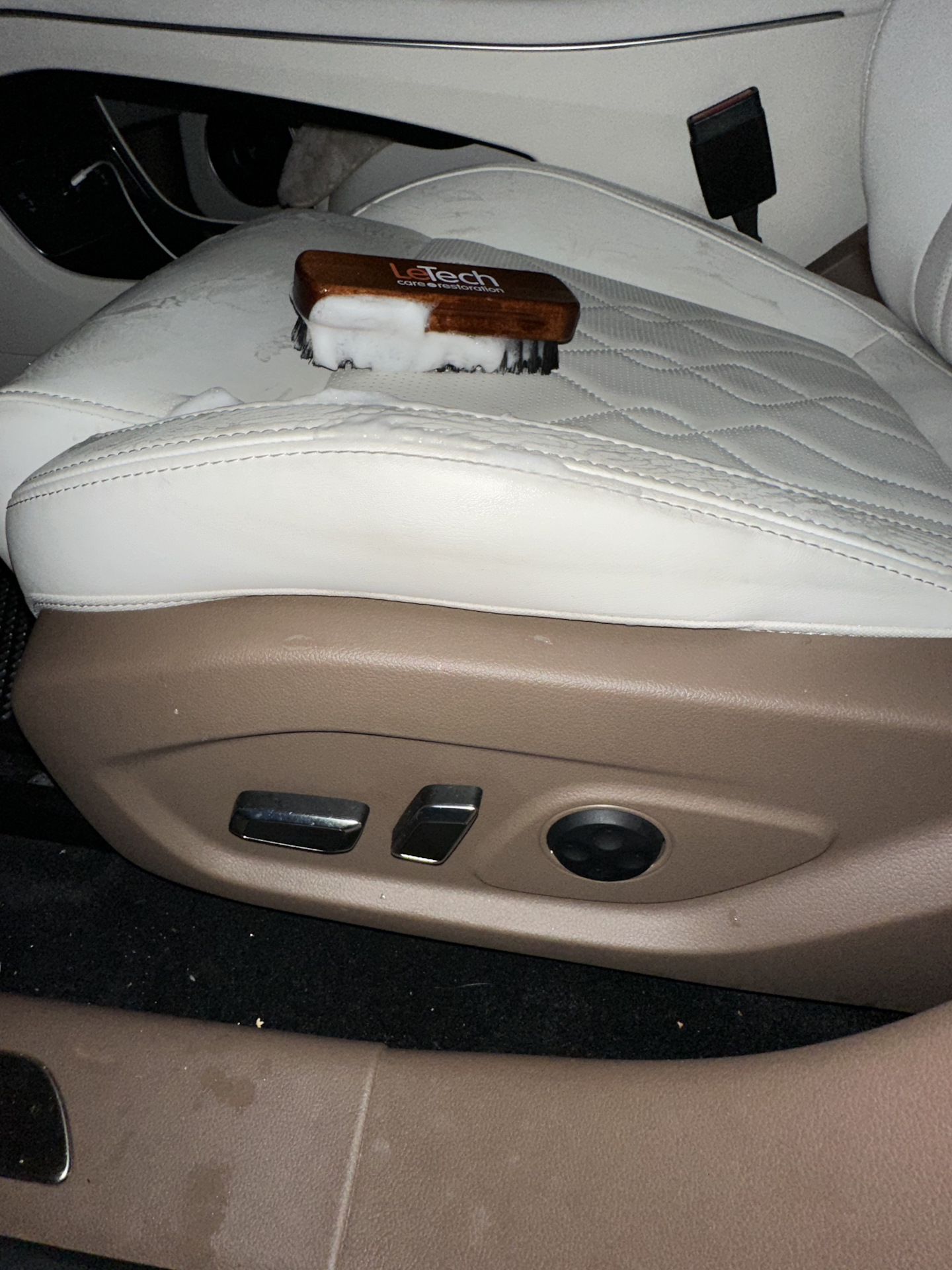 Около часа натирал щеткой весь салон, с акцентом на водительское сиденье, руль и подлокотник.