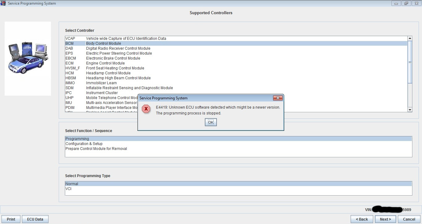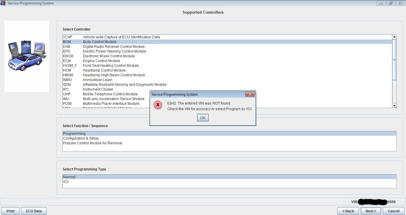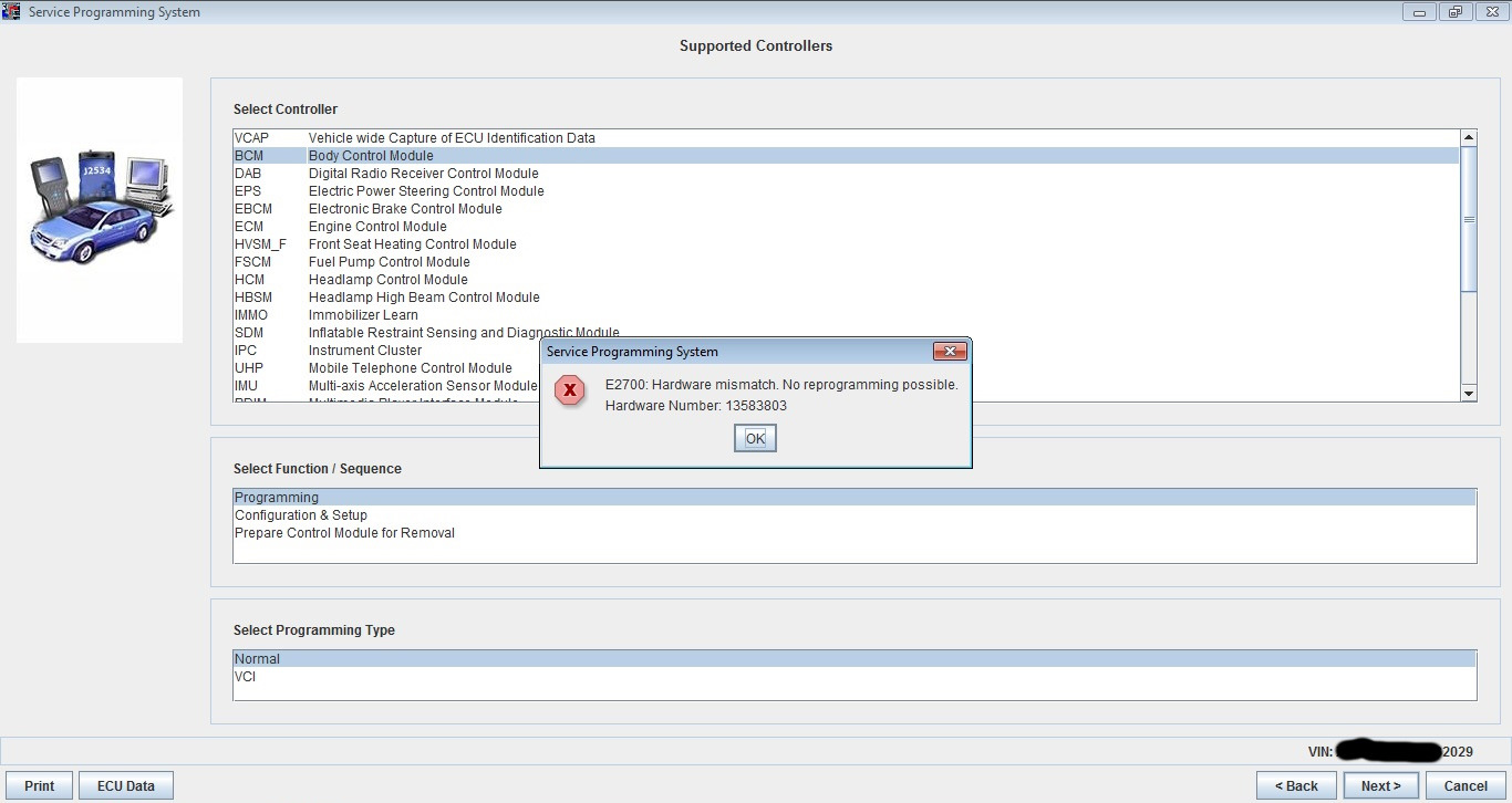 Это означает что наш автомобиль слишком «новый» для GlobalTISv32, встроенный расшифровщик автомобилей/комплектаций не знает о таком VIN. Не отходя далеко от кассы напишу еще пару ошибок которые вы можете встретите при использовании GM SPS.