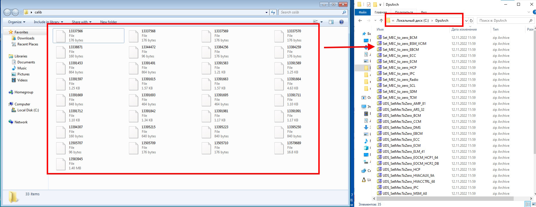 Разархивируем фалы калибровки и скопируем в папку C:\DpsArch