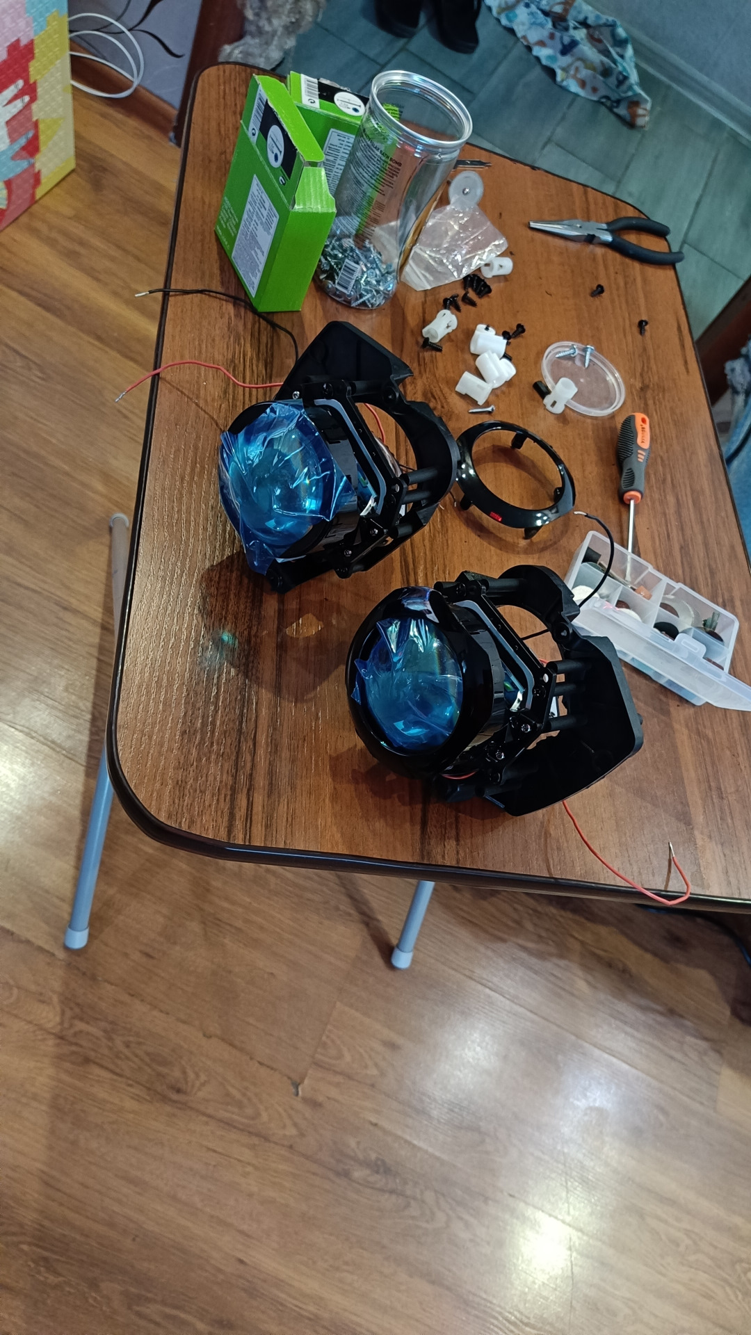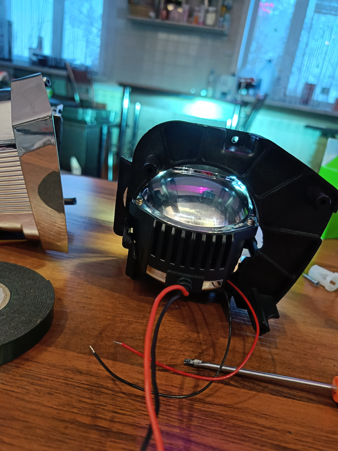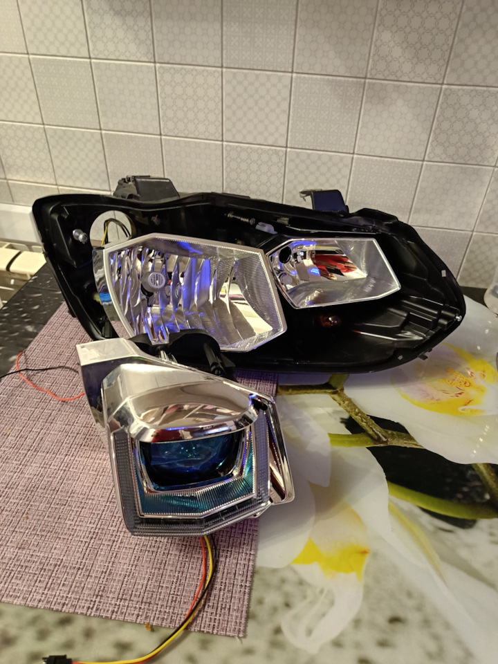 Китайские фары и диодные лампочки такое себе в плане света. Корректор постоянно внизу. Пока в поисках оригинальной фары h7 на правую сторону увидел интересное решение на d2 что есть отражатель на ближний свет с креплением под линзу на 3 дюйма