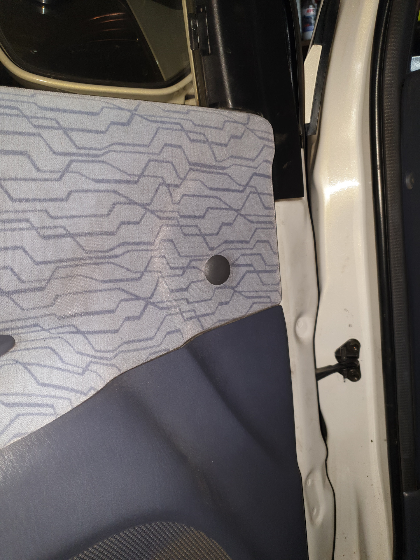 Рассмотрев комплект приступаем к замене. Для начала нужно снять дверную карту, для этого нужно снять заглушку и японский шуруп.