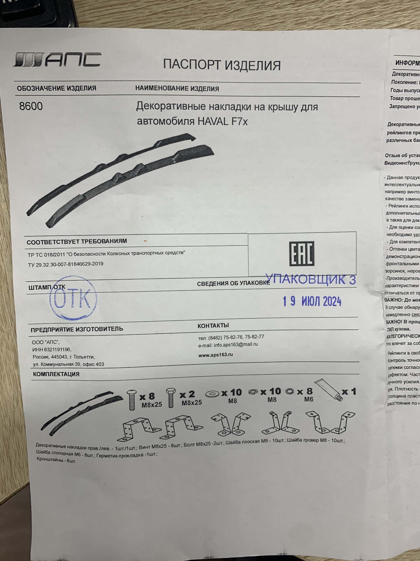 Вот так вот и подошла к концу моя история про рейлинги для моего крокодила. Если коротко подвести итог, то я не на минуту не разочаровался в компании АПС и то, что заварил такую "кашу" с рейлингами. Как и писал в первой части, мне важен надежный крепеж для безопасной перевозки груза, как для себя, так и для других водителей. Очень благодарен компании АПС за их работу и желание решить проблему клиента. Желаю им успеха и довольных клиентов!