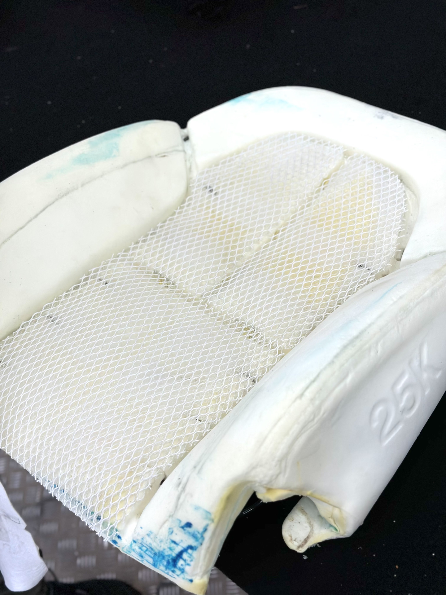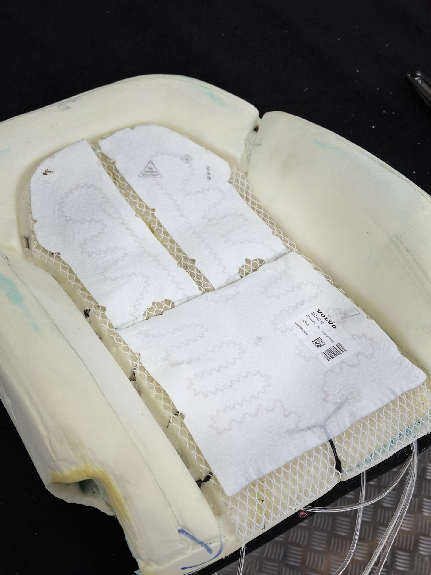 Затем на подушечки положили специальную сетку, чтобы в дальнейшем они не пропечатались на обивке сиденья.