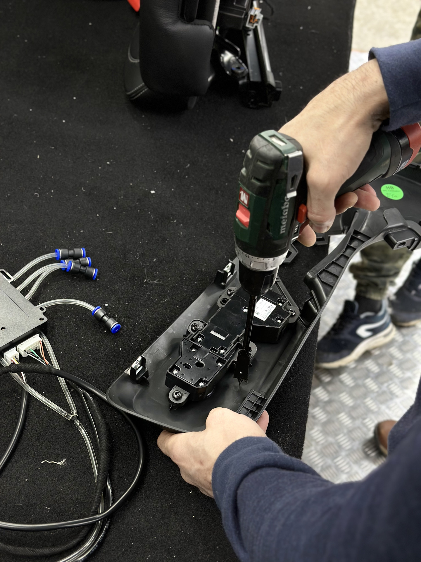 После собрали сиденье и вырезали отверстие для кнопки с тремя режимами массажа.