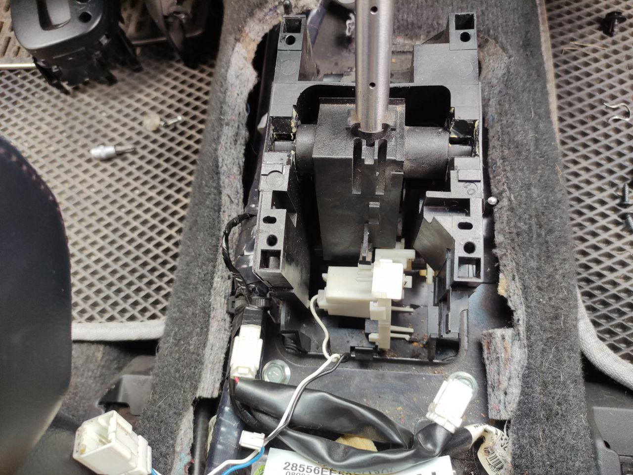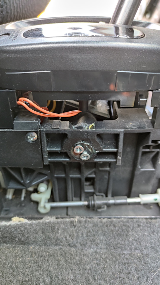 Конечно, удобнее всего было бы снять весь селектор и перебрать, но он снимается вниз а там выхлопная, нужна яма… Тот еще гемор, и по этому решился менять прям в машине)))