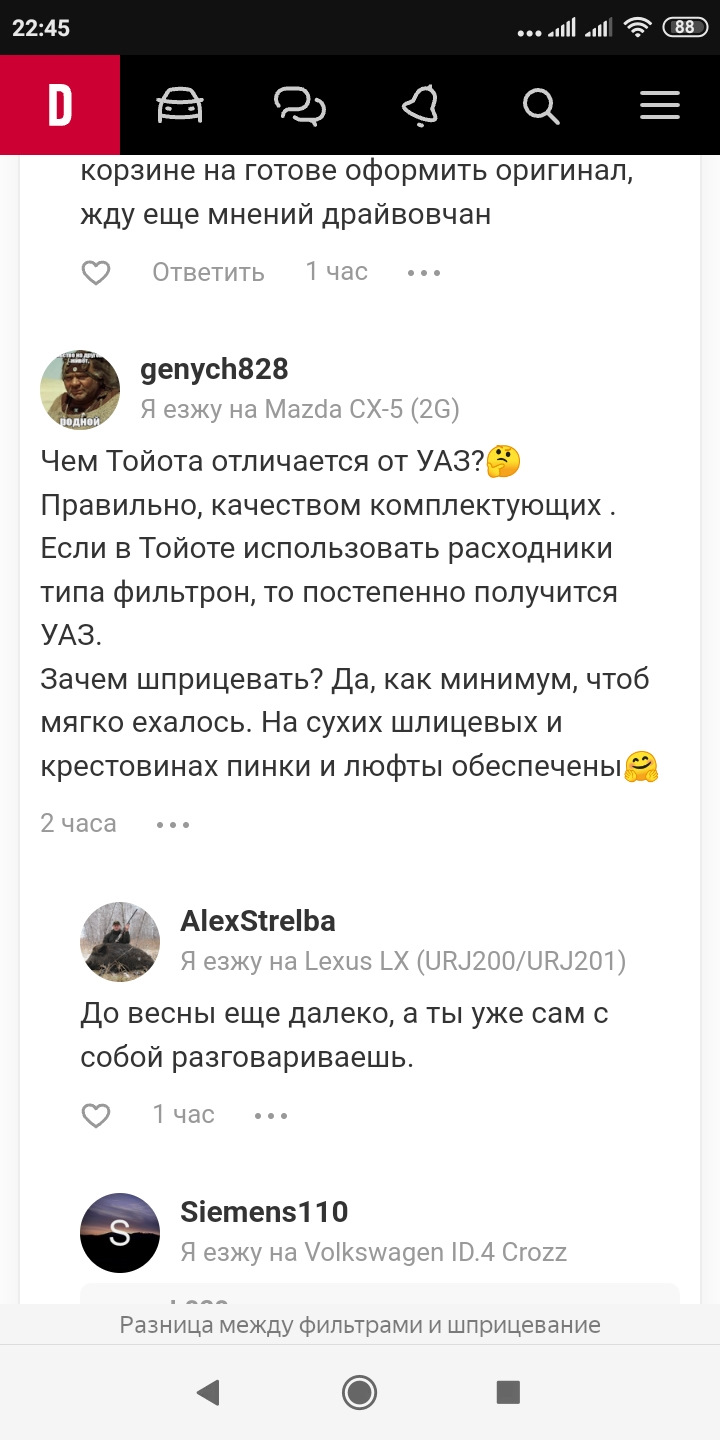 Чем Тойота отличается от УАЗ?🤔 Правильно, качеством комплектующих . Если в Тойоте использовать расходники типа фильтрон, то постепенно получится УАЗ.