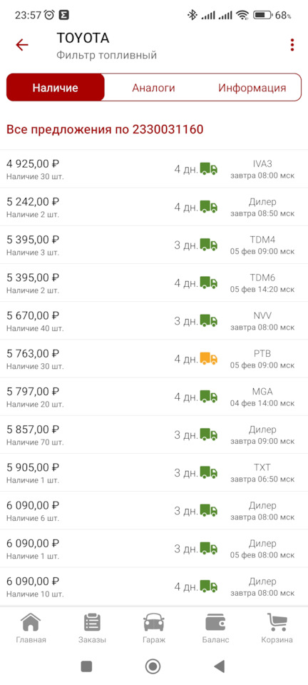 Привет Игорь! Сижу подбираю топливный фил на своего Прадика, Kyosan 186130-3060 доставка 18дней (, остановился на Mahle/Knecht KL456, доставка 2дня, цена как и у Kyosan чуть больше 2х тыс