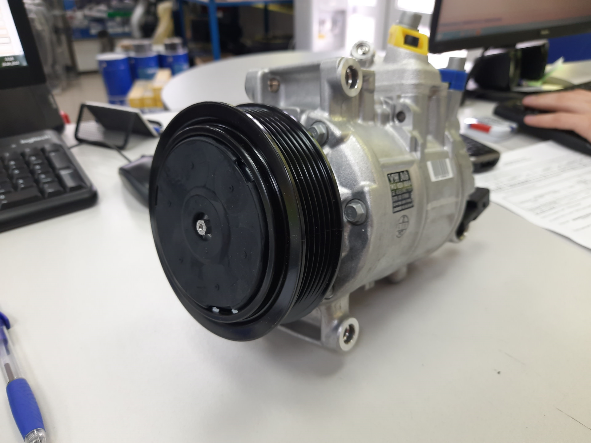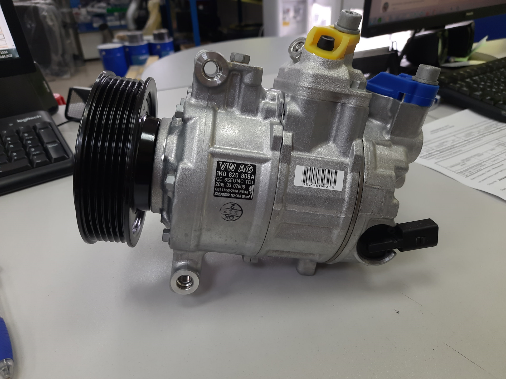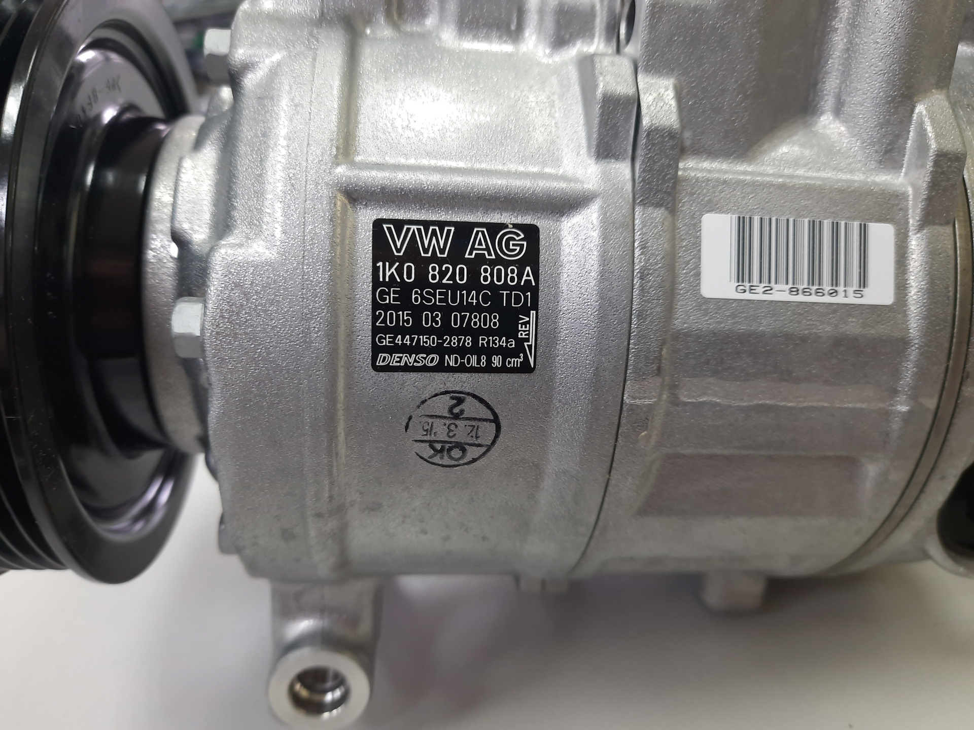 Новый оригинальный компрессор кондиционера VAG 1K0820808AX. До меня даже ни разу не вскрывался, коробка был заклеена оригинальным скотчем и стянута стяжными лентами.