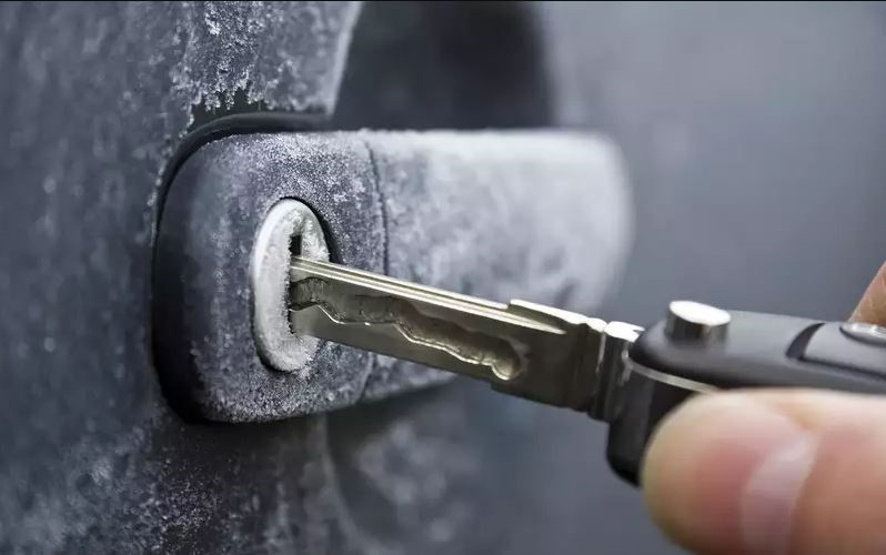 У меня зимой не открывалась водительская дверь. Замёрз именно замок ( я так понял). Нагрел жало ключа горелкой газовой), вставил ключ в в замок. Залил вдшкой его. В итоге провернулся ключ и дверь открылась.