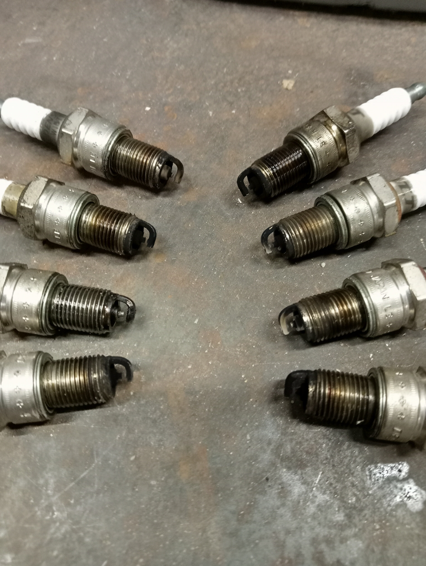 Прикупил зиловские провода от слона, поменял наконечники что идут на катушки от старых проводов, подрихтовал площадку от катушек, приварил уголок и все надёжно проварил. Выкрутил свечи которые отходили пару тысяч только, выглядели они как кусок говна. Возможно после раскоксовки они были так загажены, х.з. с тех пор много что сделано/поменяно. Как закончу с воздушнотопливной системой опять поменяю. Под капотом теперь стало гораздо приличнее.