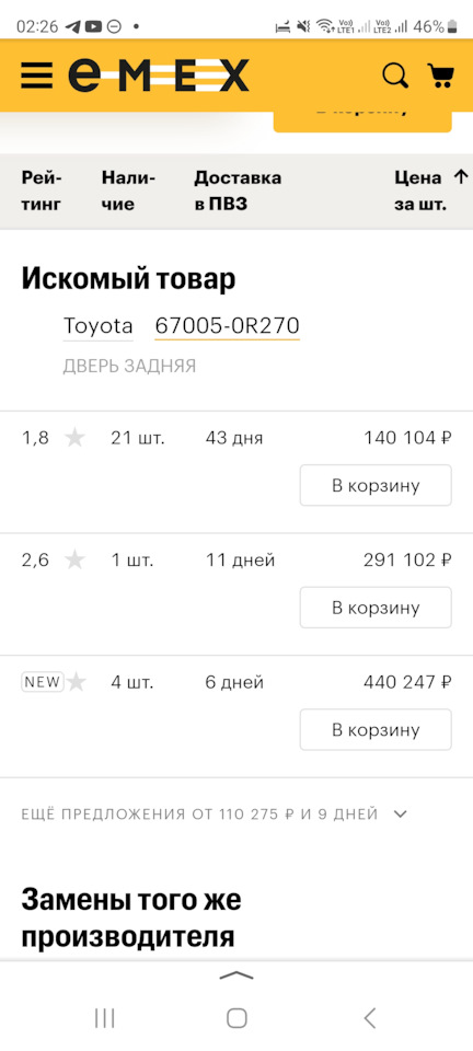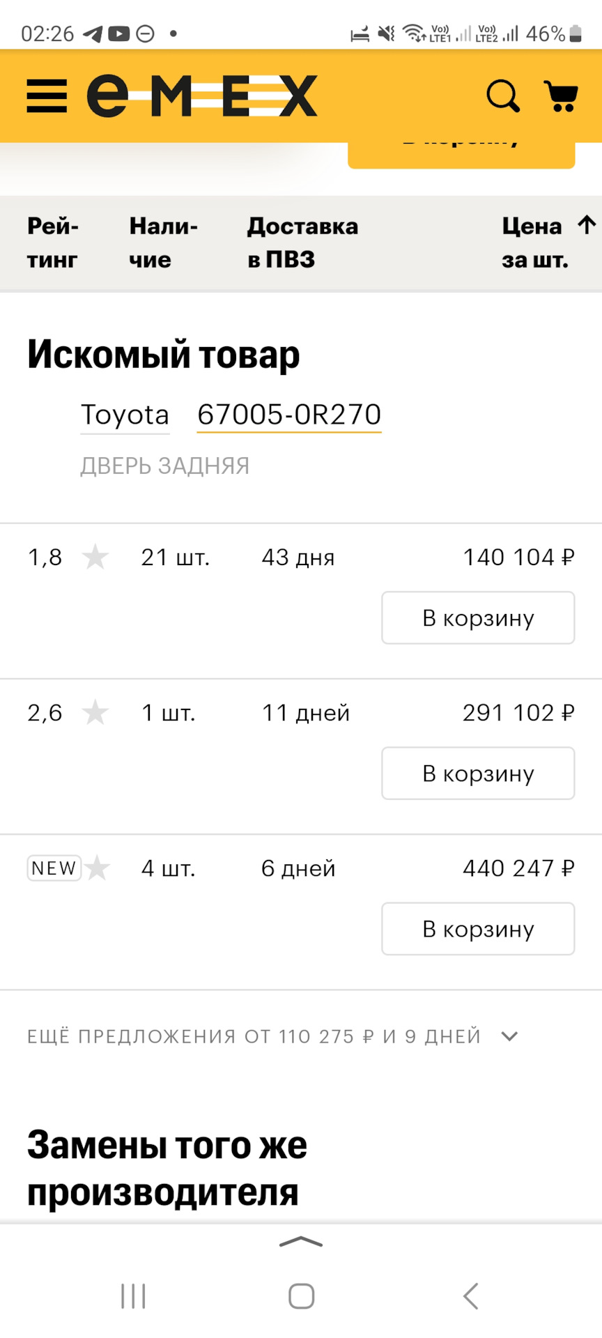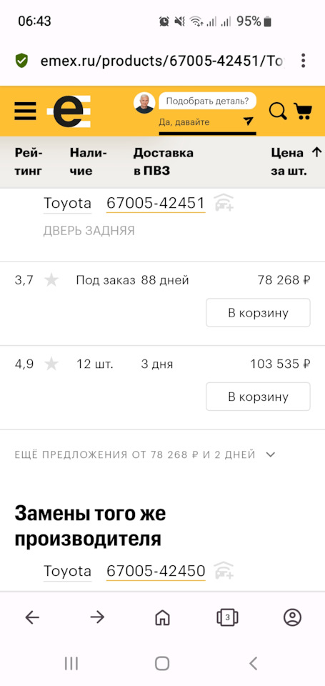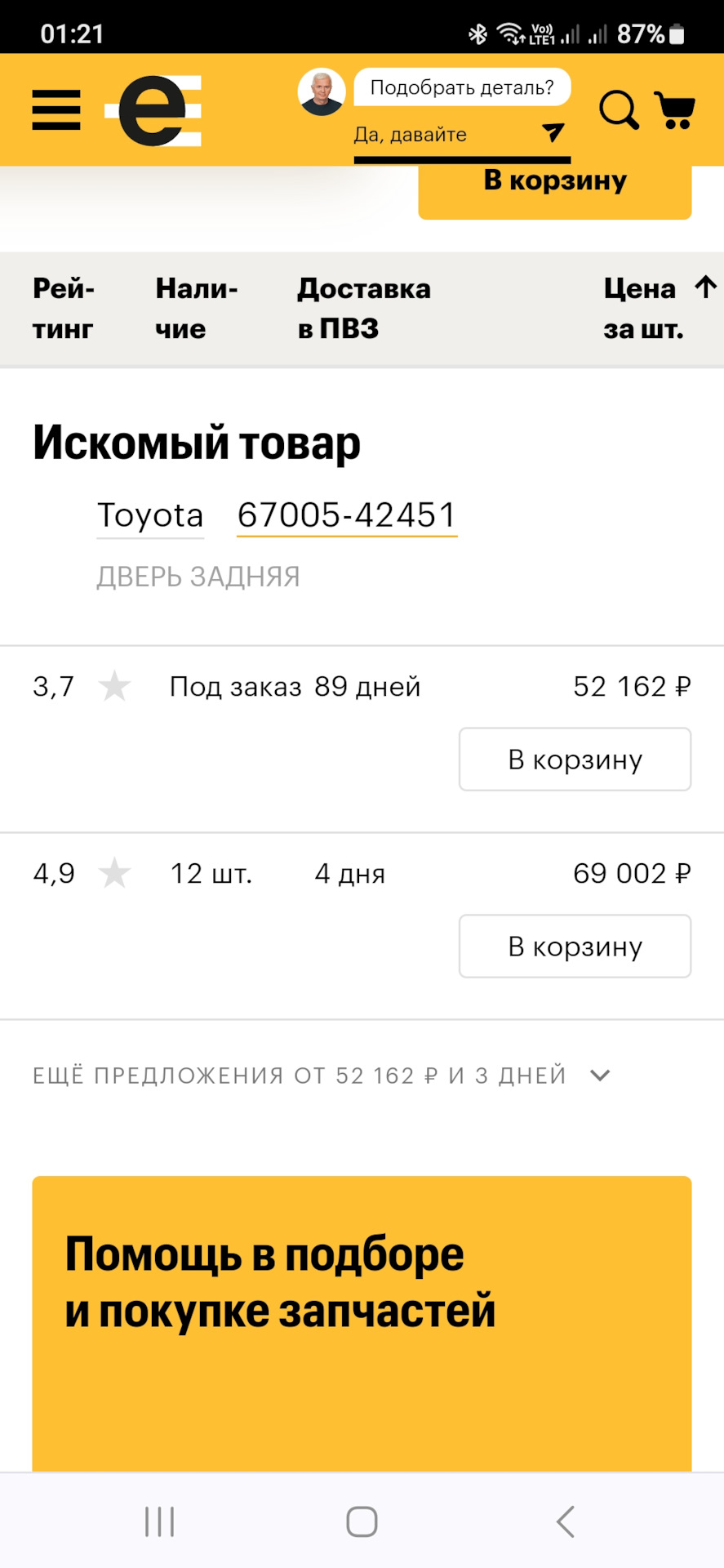 Тут надо сделать поправку на желание самостоятельно купить по самому лучшему ценнику. А не тому, который выдает условный экзист или по которому запчасть клиенту продаст сервис. Не люблю всей душой это их желание получать и со входа, и с выхода.
