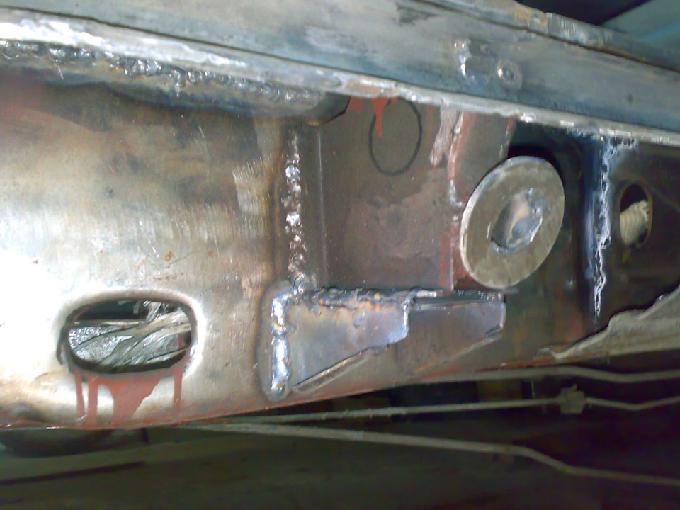 По поводу этого "и собственно как порог держится возле отверстия поддомкратники" Если имеется введу возле трубы, то обварено вокруг.