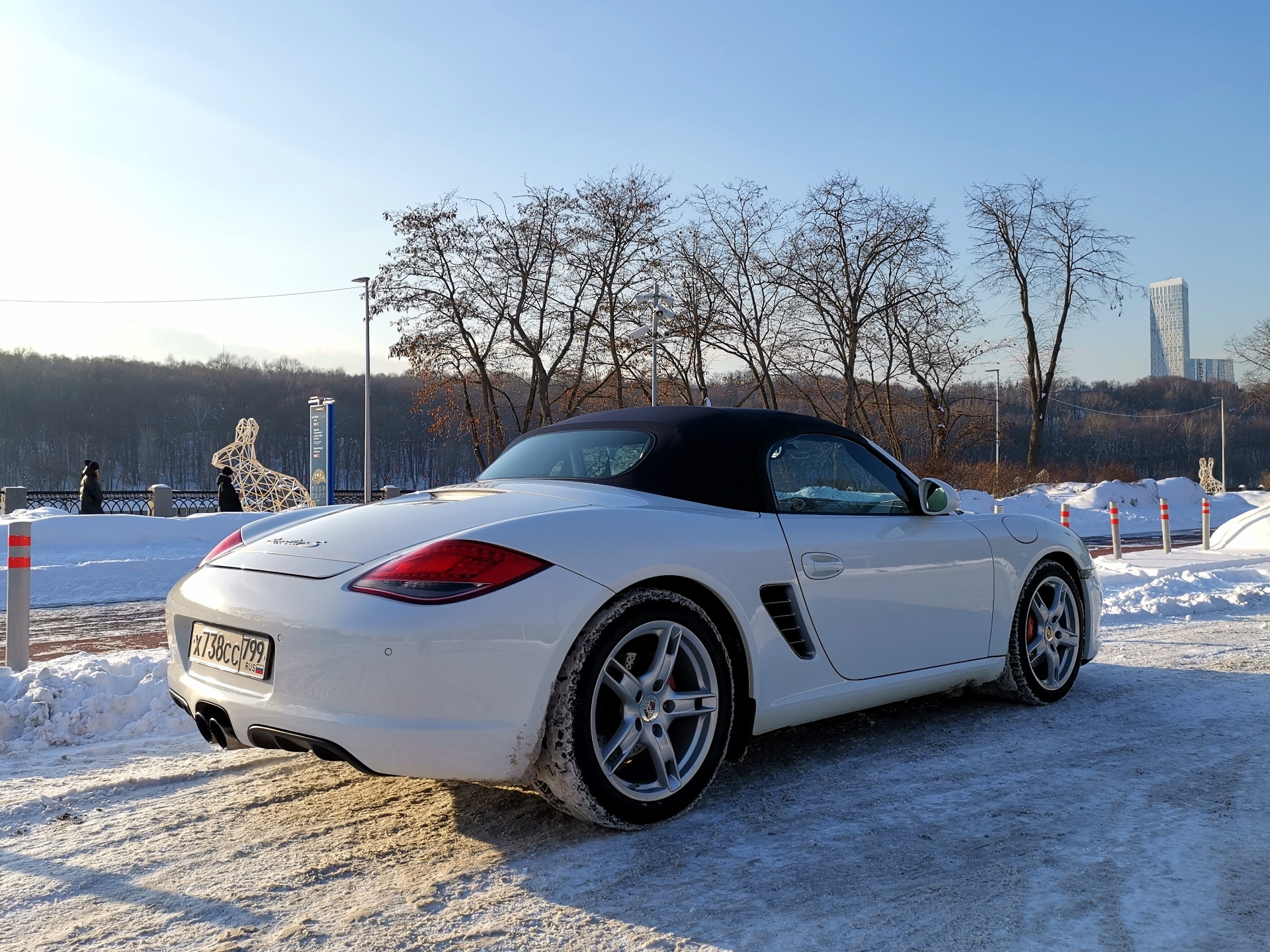 На чистом и сияющем Бокстере я решил заехать в Лужники, попытать удачу и сделать зимние фотографии чистой машины в ясный день, может какие и получатся сносно, ну и на память, ведь скоро оттепель😂
