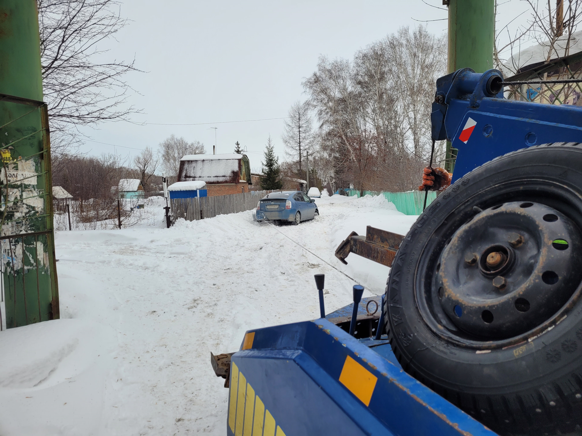 Эвакуатор сам себя эвакуировал, размотал лебедку (как мы выяснили потом — 25 метров) и потащил Prius. Включил Prius без педали тормоза двух кратным нажатием на Power (чтобы окончательно не высадить батарею) и перевел в N (благо прошлым летом поставил новый AGM 12В аккумулятор GS Yasa большей чем было с завода ёмкости).