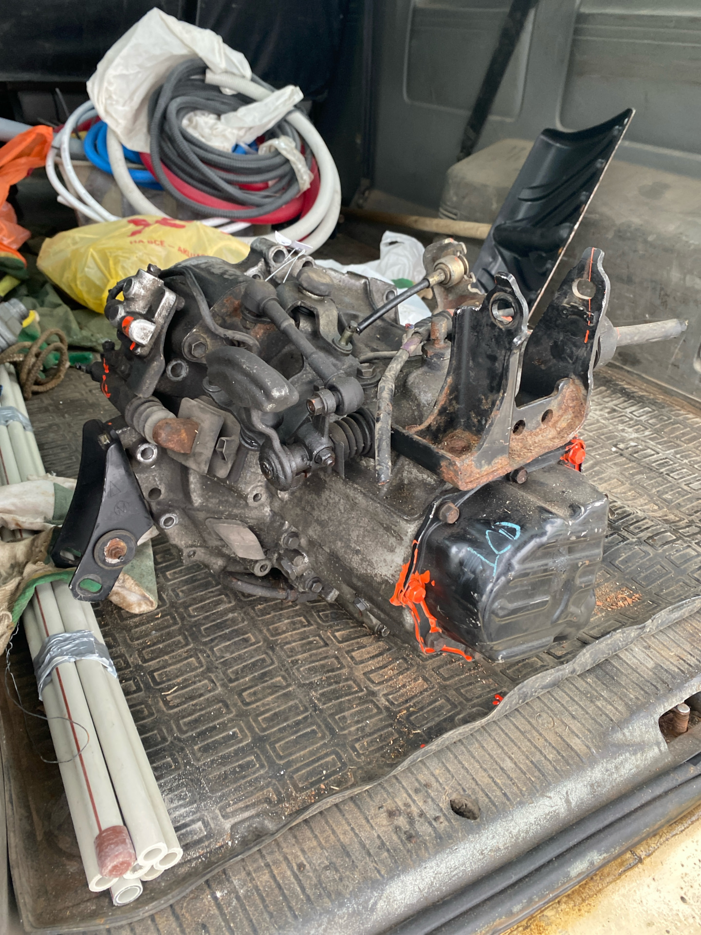 Сверху все от кпп отсоединяется и снимается стартер с рабочим цилиндром сцепления (в моем борту должна быть подробная инструкция) но даже если ее нет — сложности нет