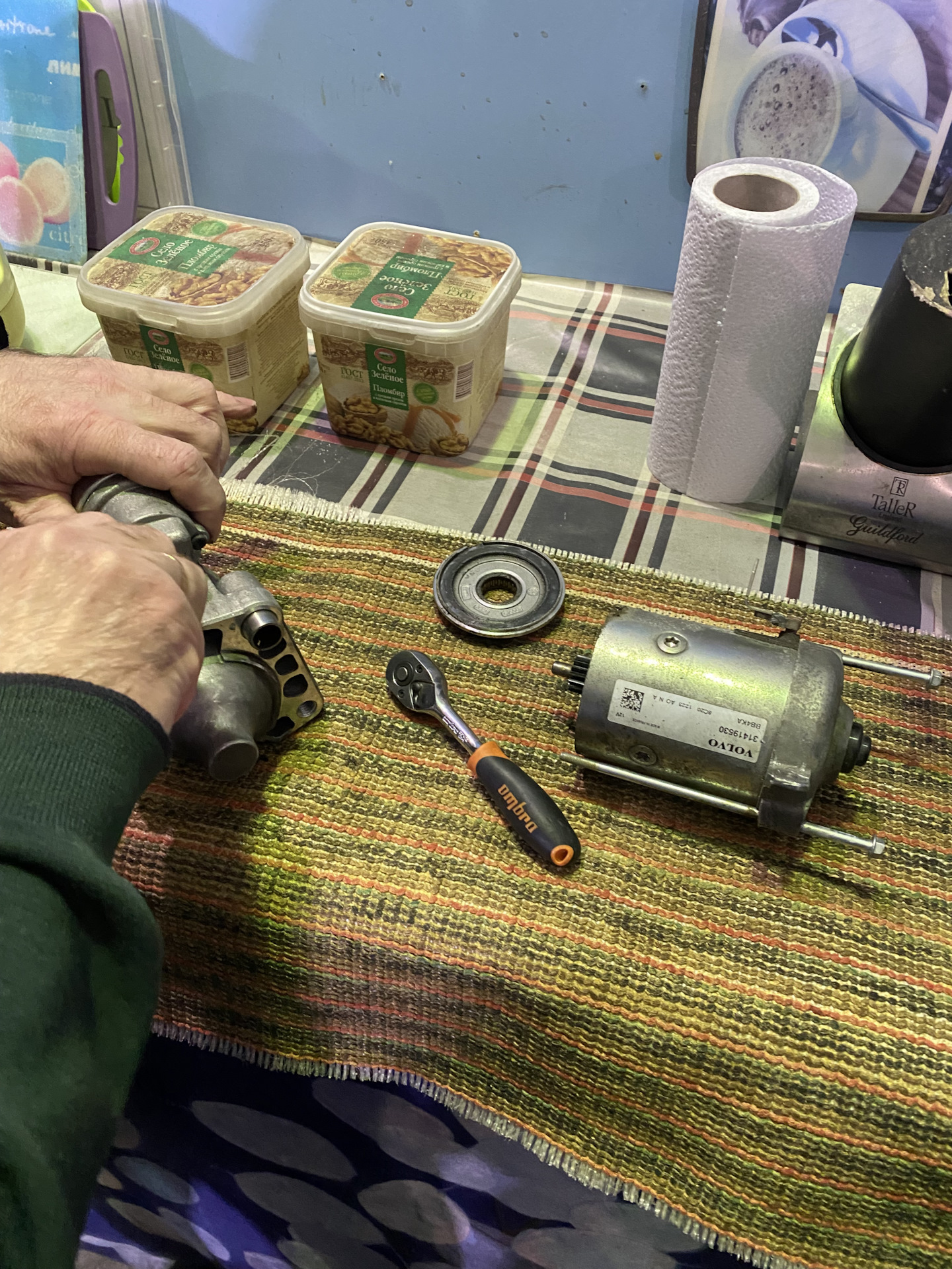 Ранним утром, морозным, засвистел металическим звуком мотор. Подозрение было на шкиф. Но нет. Стартер. В виду того, что ехать на машине нельзя, а за эвакуатор 15000 рублей запросили, решили разбирать сами, в гараже.