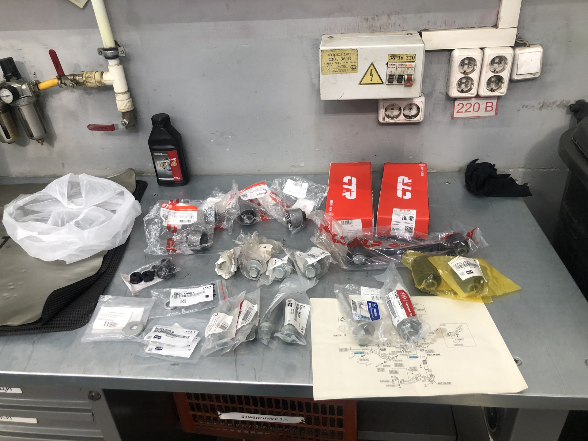Аморты и пружины под замену, втулка стабилизатора тоже, сайленты нижнего и верхнего рычага под замену 4шт. Сход развал и тестовый выезд. Нравится, управляется и не шумит то ездим. Прочие рычаги или сайленты в них лучше менять когда им совсем плохо.