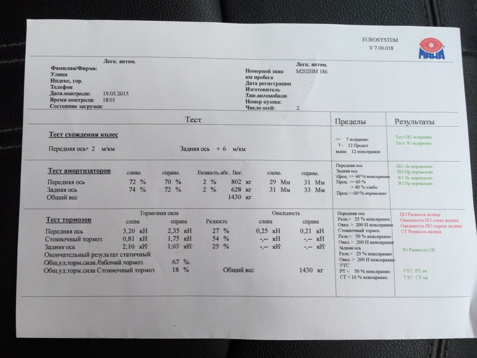 Перед заменой пружин по кругу решил заехать на вибростенд чтоб проверить работоспособность амортов. Честно сказать я думал что они у меня мертвые но оказалось что совсем еще нормально даже. Зато нашли утечку тормозной жидкости, на это как раз указывает овальность. Из за неравномерного торможения, испортил я диски тормозные передние, поэтому их приговорили на замену. Заодно всю ходовую проверили, вроде все хорошо, кроме задних плавающих сайлентблоков, скрипят как телега) вот такие дела.