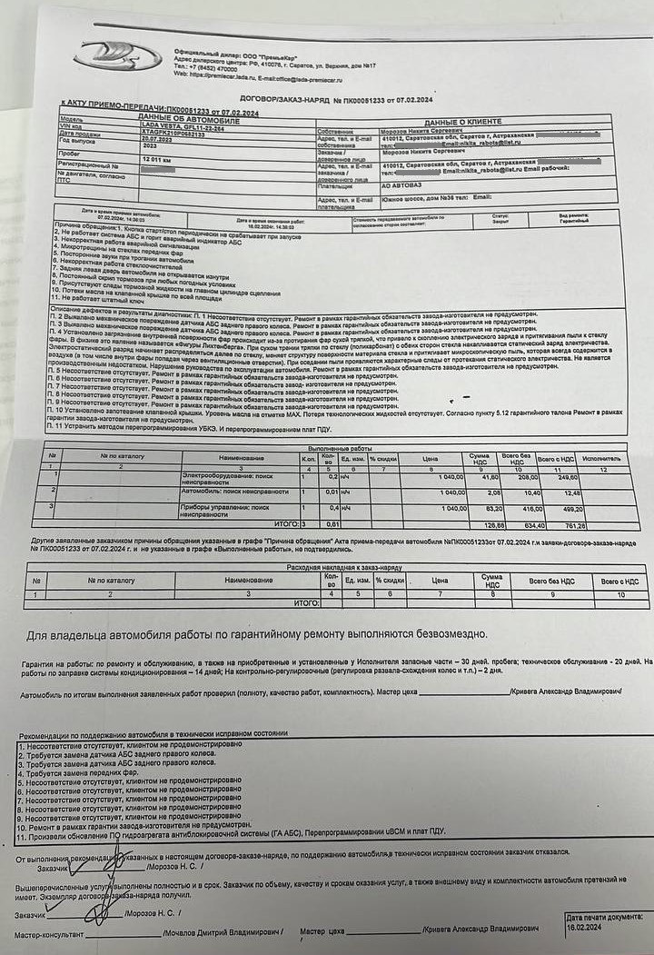 09.02.24 повторно позвонили и уточнили, буду ли я менять АБС или нет. Сообщил что-бы по претензии проводили дальше полную проверку, АБС пока не меняем.