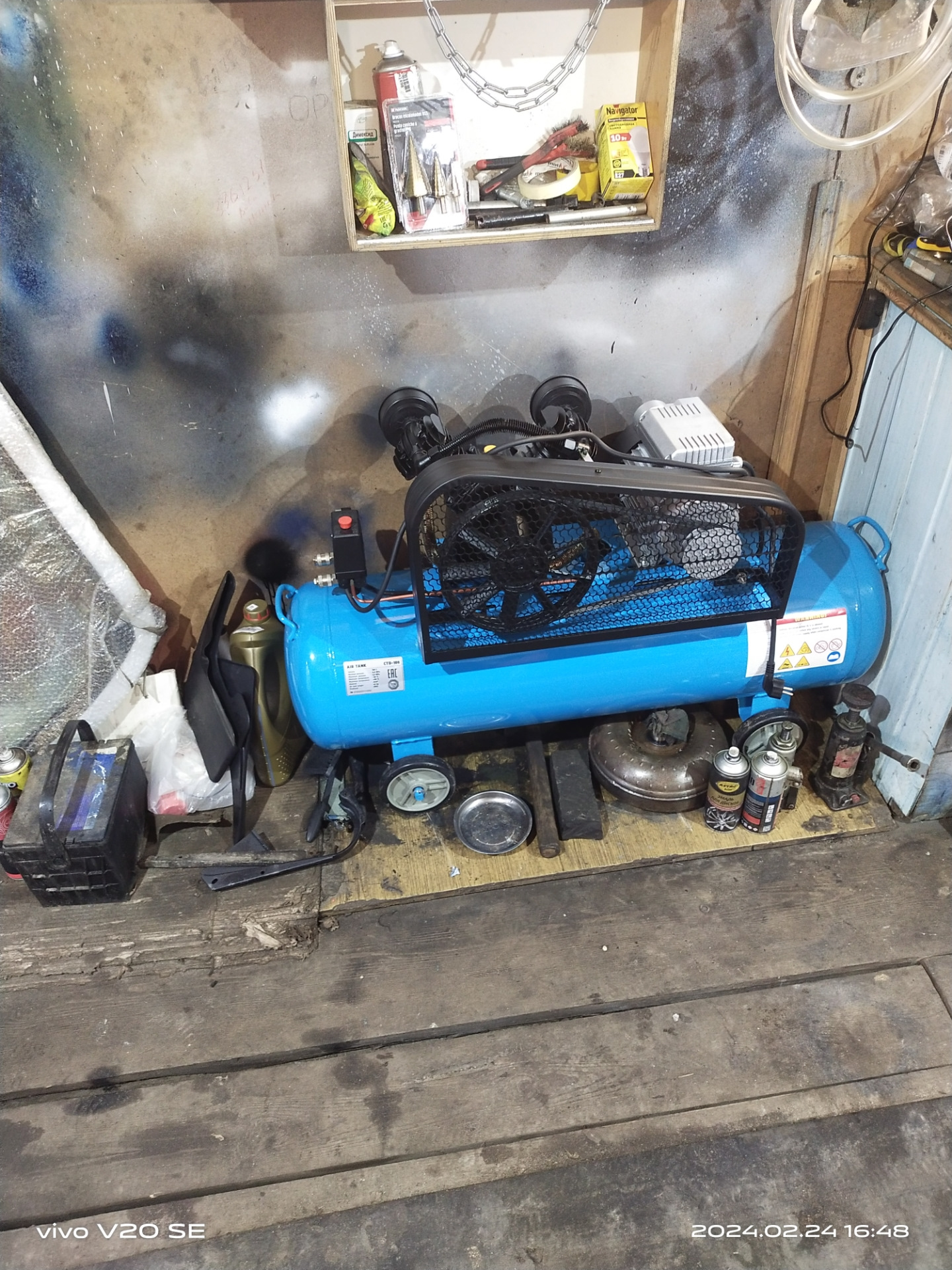 Также сегодня приобрёл помощника в гараж, ременной компрессор на 100 литров DGM AC-2100B (DG2720-2)