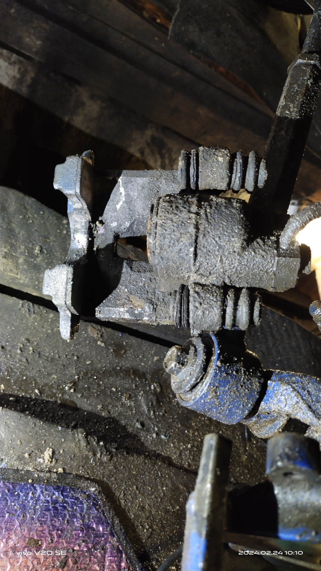 Привет всем. Сегодня решил произвести ревизию задних тормозов и заодно заменить ступицы. 3 года назад произвёл замену барабанных тормозов на дисковые и ни разу больше туда не лазил, а зря. Суппорт был весь заросший грязью, на правой стороне наружняя колодка прикипела к поверхности, по которой она ходит и снять смог только молотком.