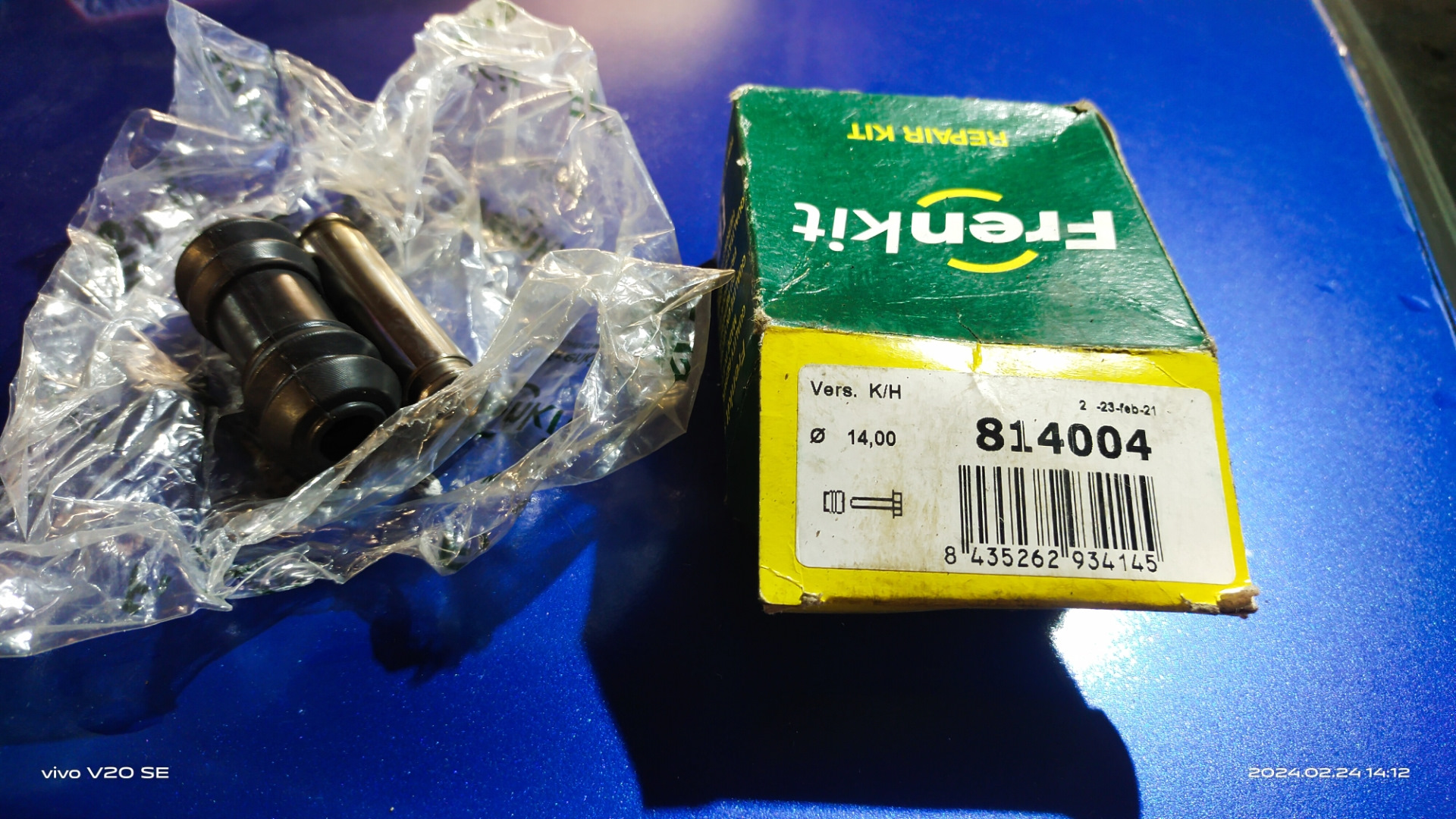 Пыльники и новые направляющие взял из ремкомплекта Frenkit 814004, покупал давно этот набор только ради болтов крепления суппорта. Направляющие смазал смазкой TRW pfg110, все прилегающие поверхности смазкой Liqui Moly 3074 . Колодки не менял, т.к к ним претензий нет, износ менее половины.