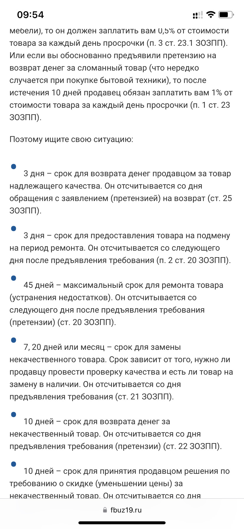 Ткните в конкретный пункт, где 45 дней считаются с момента передачи товара в ремонт?