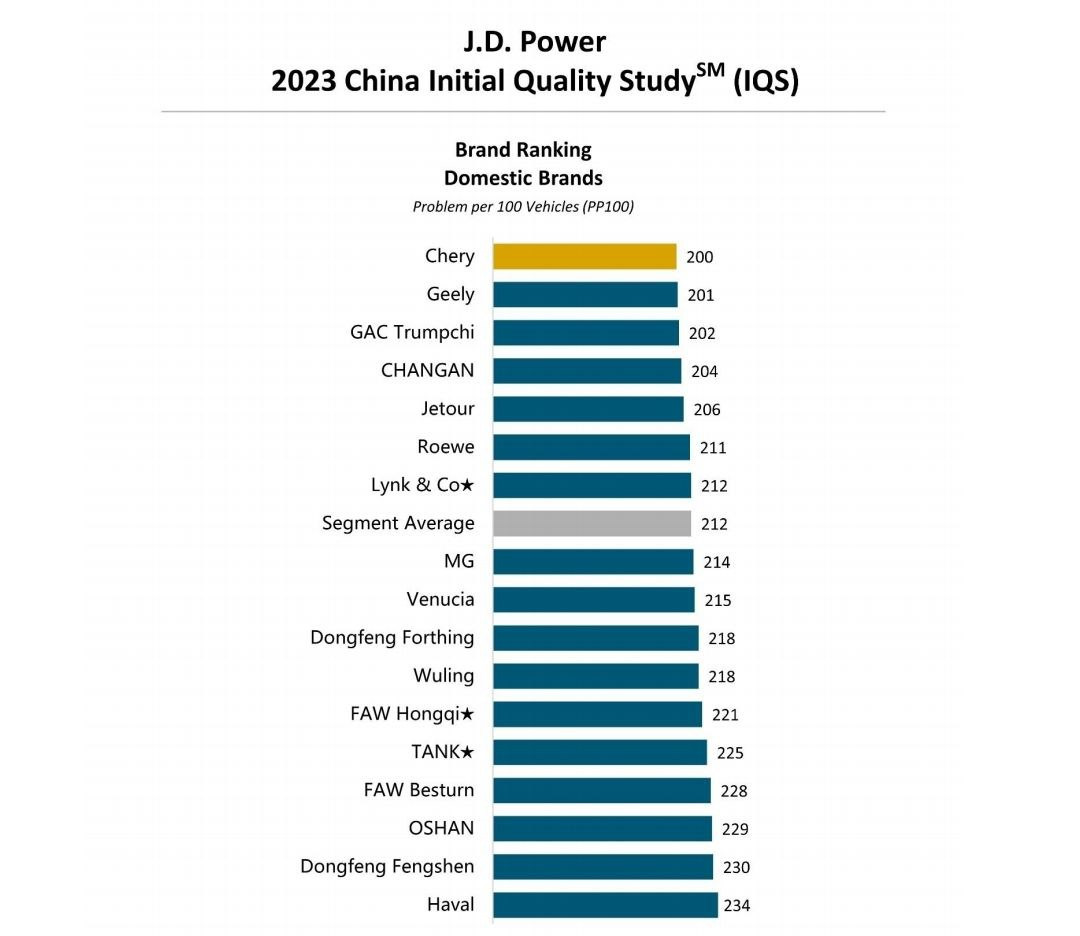 Вот именно. А у чери по статистике за 23 год меньше обращений в сервис чем у ауди, форда, субару. Можно нагуглить по запросу J.D.Power PP100 23 year