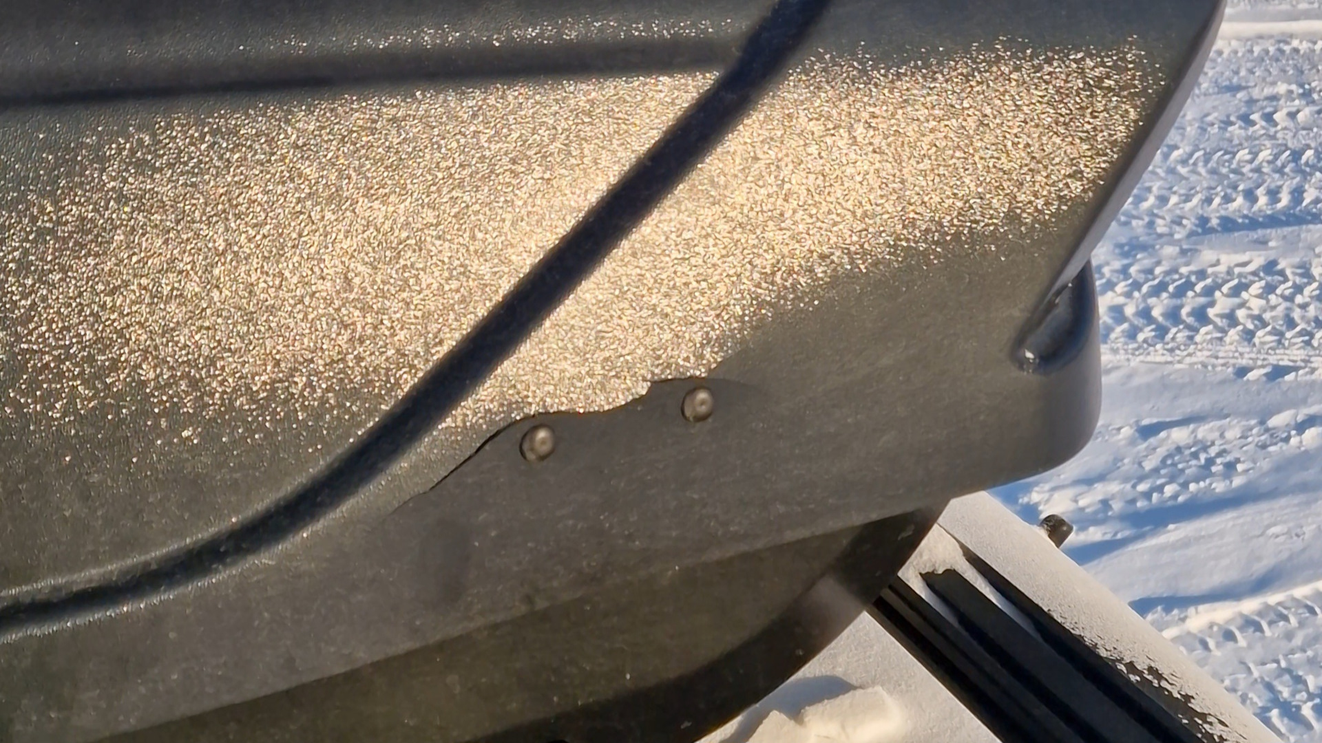 Заключается он в следующем, этот бокс нельзя закрывать и открывать если на улице -40⁰С и ниже! Сделан он из АБС пластика, не особо толстого и жёсткости у него нет, а при морозе он становится как стекло.