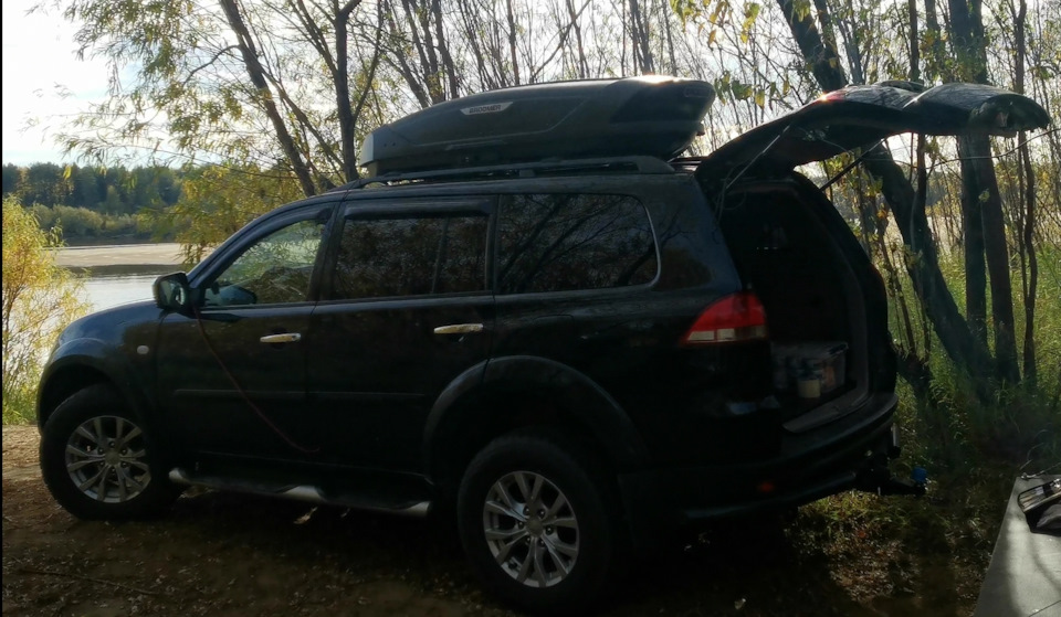Вместительный автобокс, капитально расширил место в багажнике. На скорости не открывется, испытано на 170км/час, больше не рискнул. Пыль собирает, вода попадает, но не критично. И все бы хорошо, но есть нюанс.