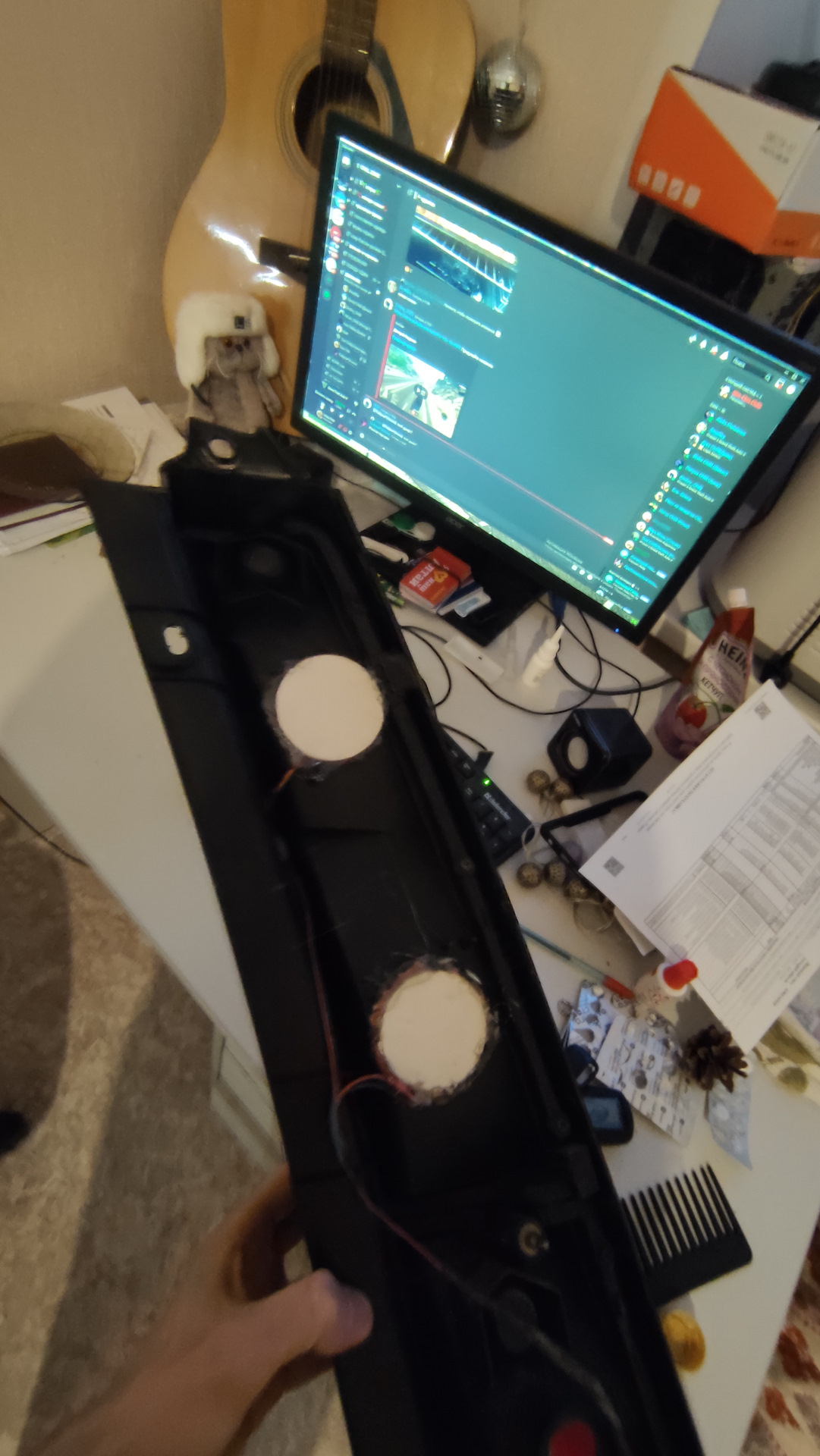 Паяльником вырезал отверстия, и посадил модули на термоклей пистолетом.