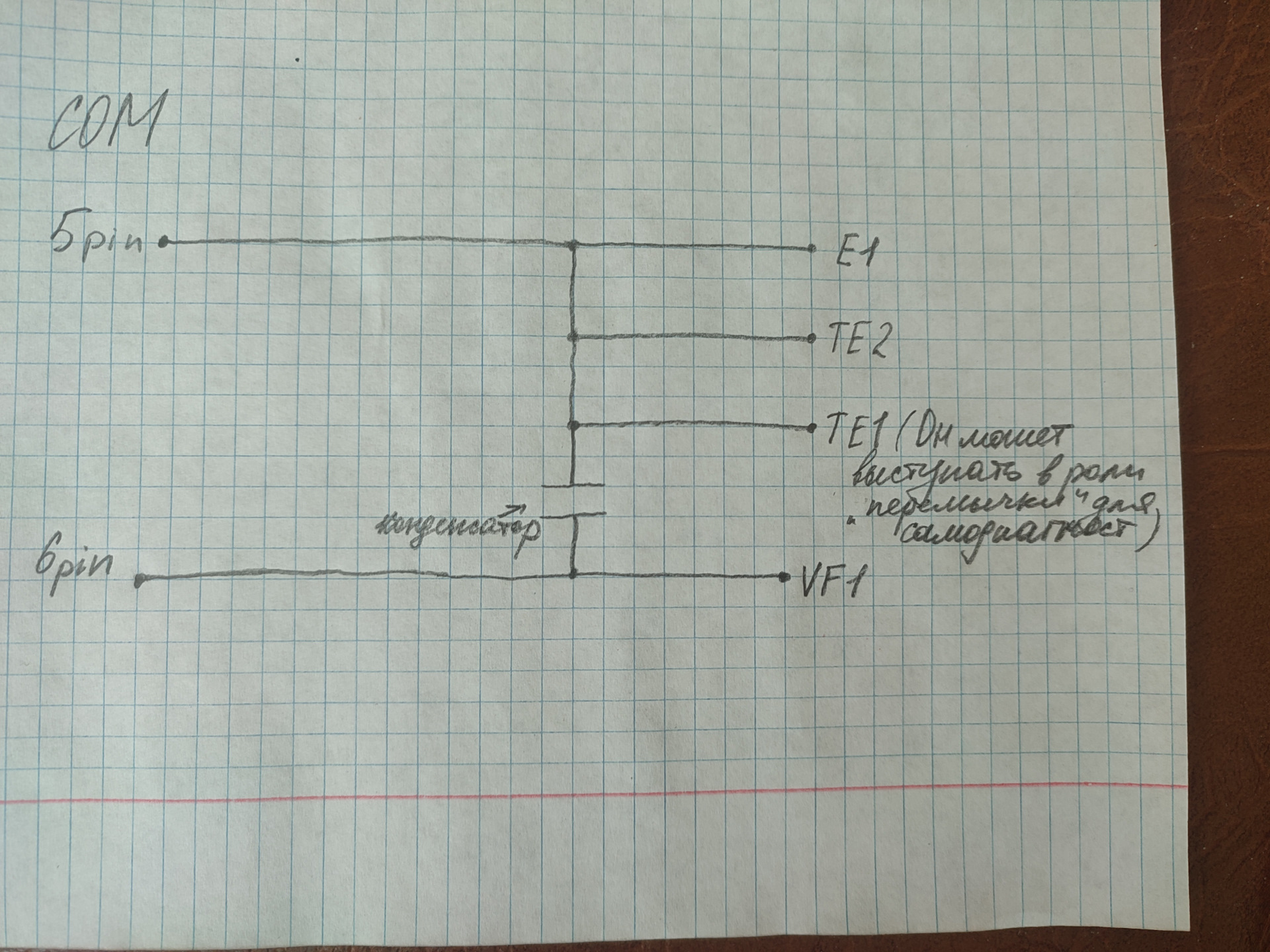 На пятой ноге сканера висит 3 провода, по сути нужны только 2, на контакты Е1 и ТЕ2. Третий на ногу ТЕ1 может выступать в роли перемычки для самодиагностики.