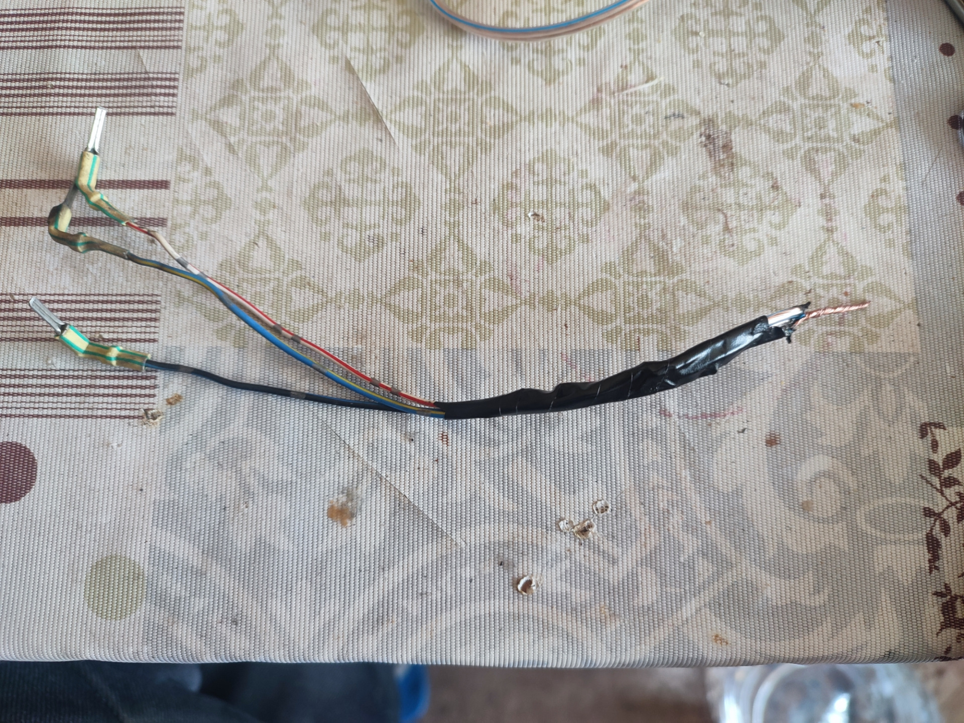 Следом берём 3 провода с "папками", скручиваем их между собой и припаиваем к проводу, который идёт с пятого пина, то есть со стороны, где 5 ножек разъёма. Потом припаиваем 1 провод к проводу с шестого пина, то есть со стороны, где 4 ножки разъёма.