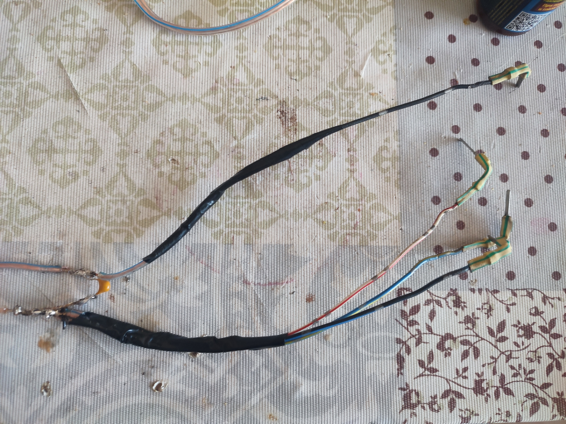 Припаиваем между ними перемычку в виде кондёра. Я взял на 2.7 нФ и до 50 вольт, самый обычный керамический. Обматываем изолентой так, чтобы провода между собой не соприкасались, кроме как через кондёр. Всё, сканер готов.