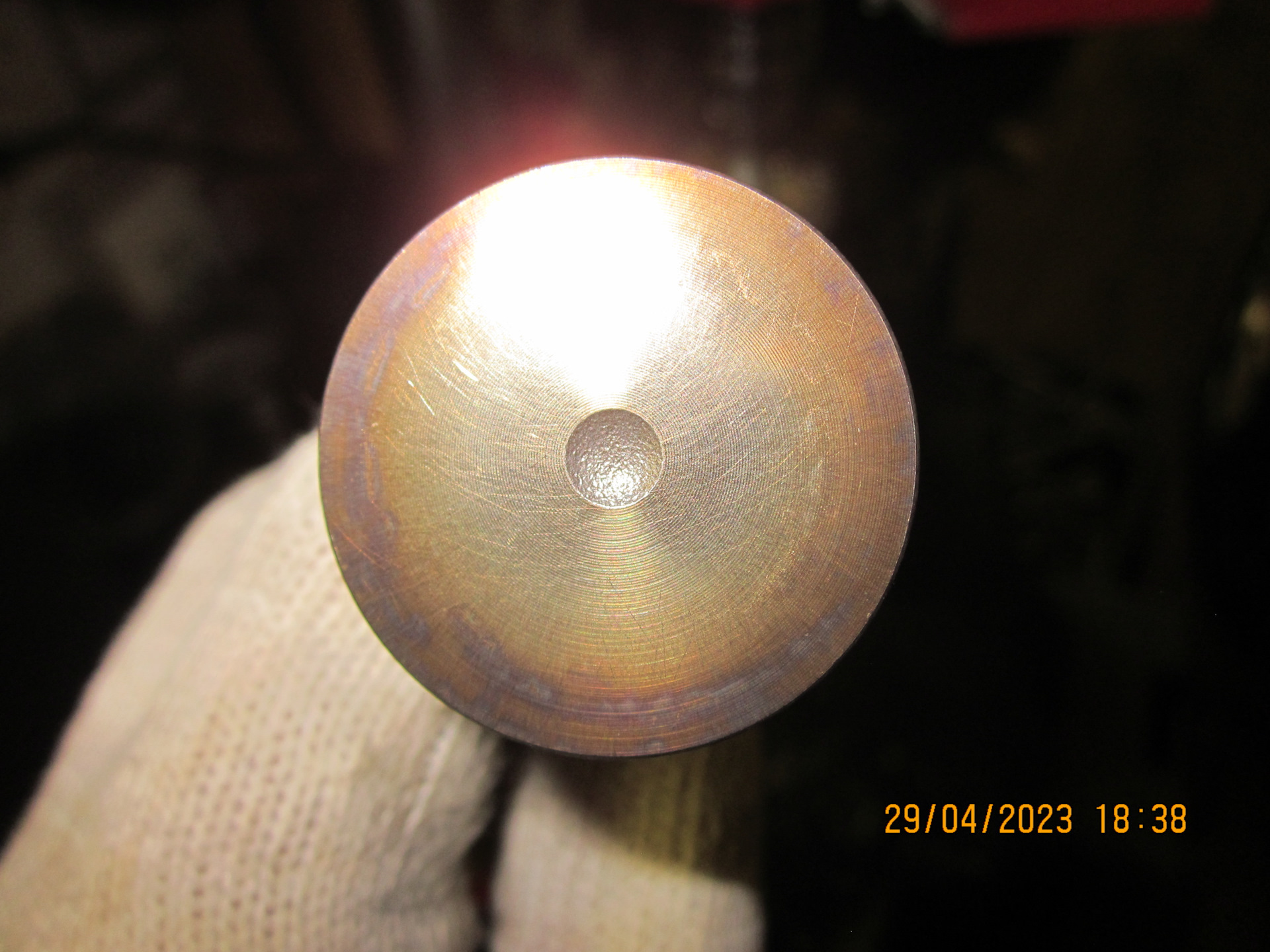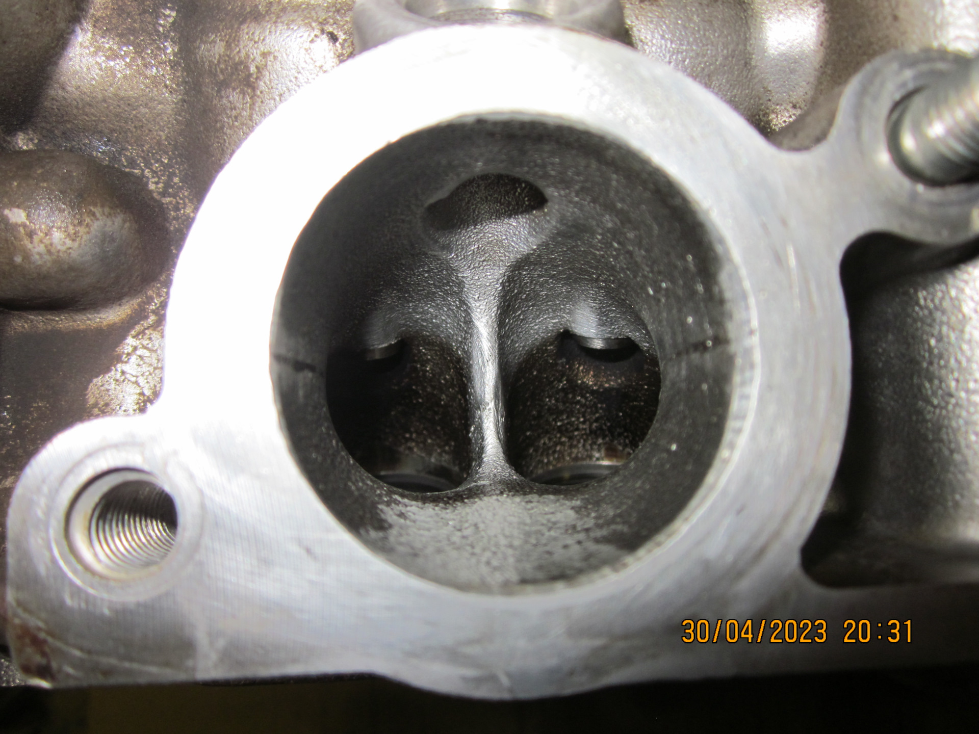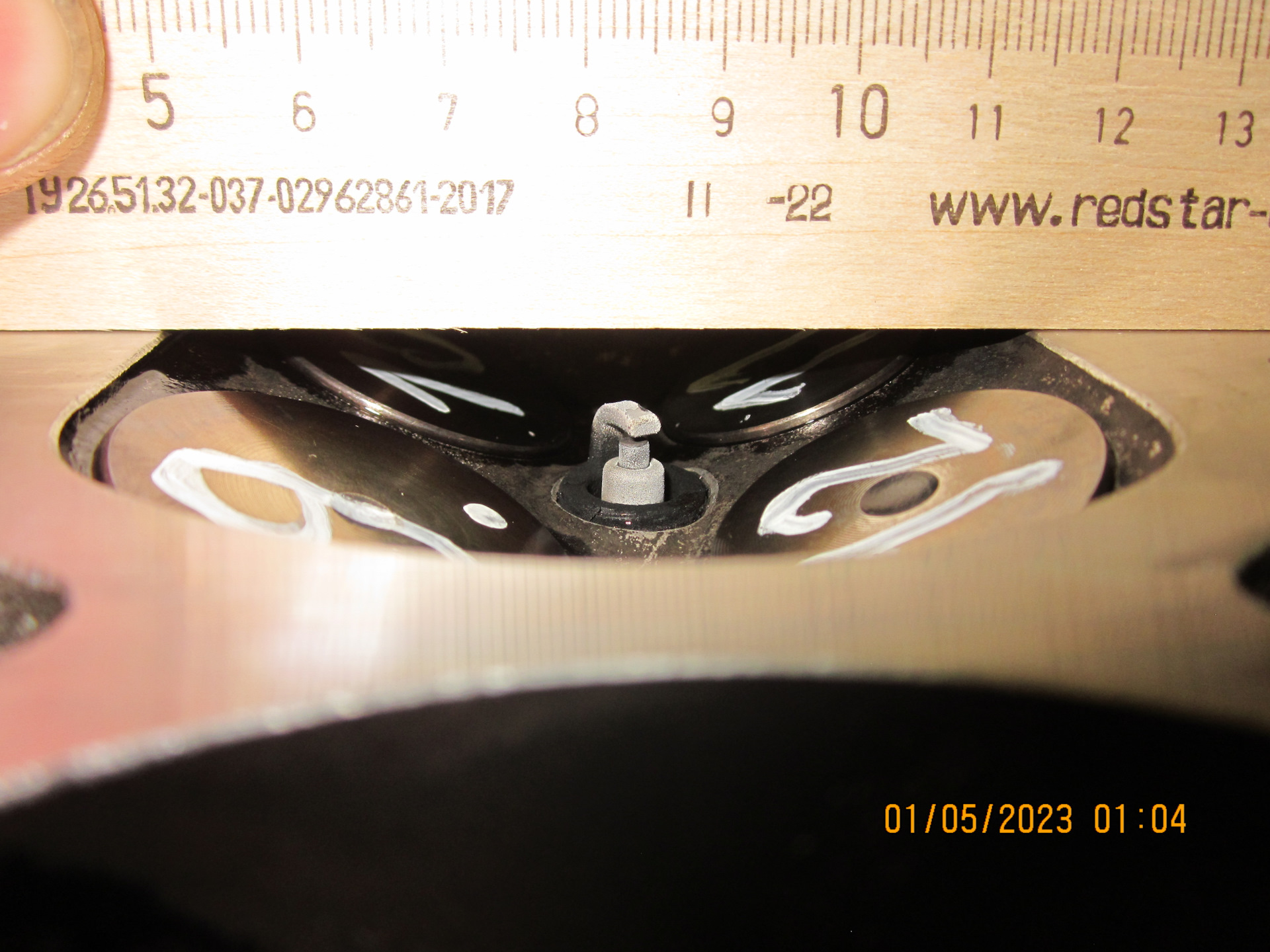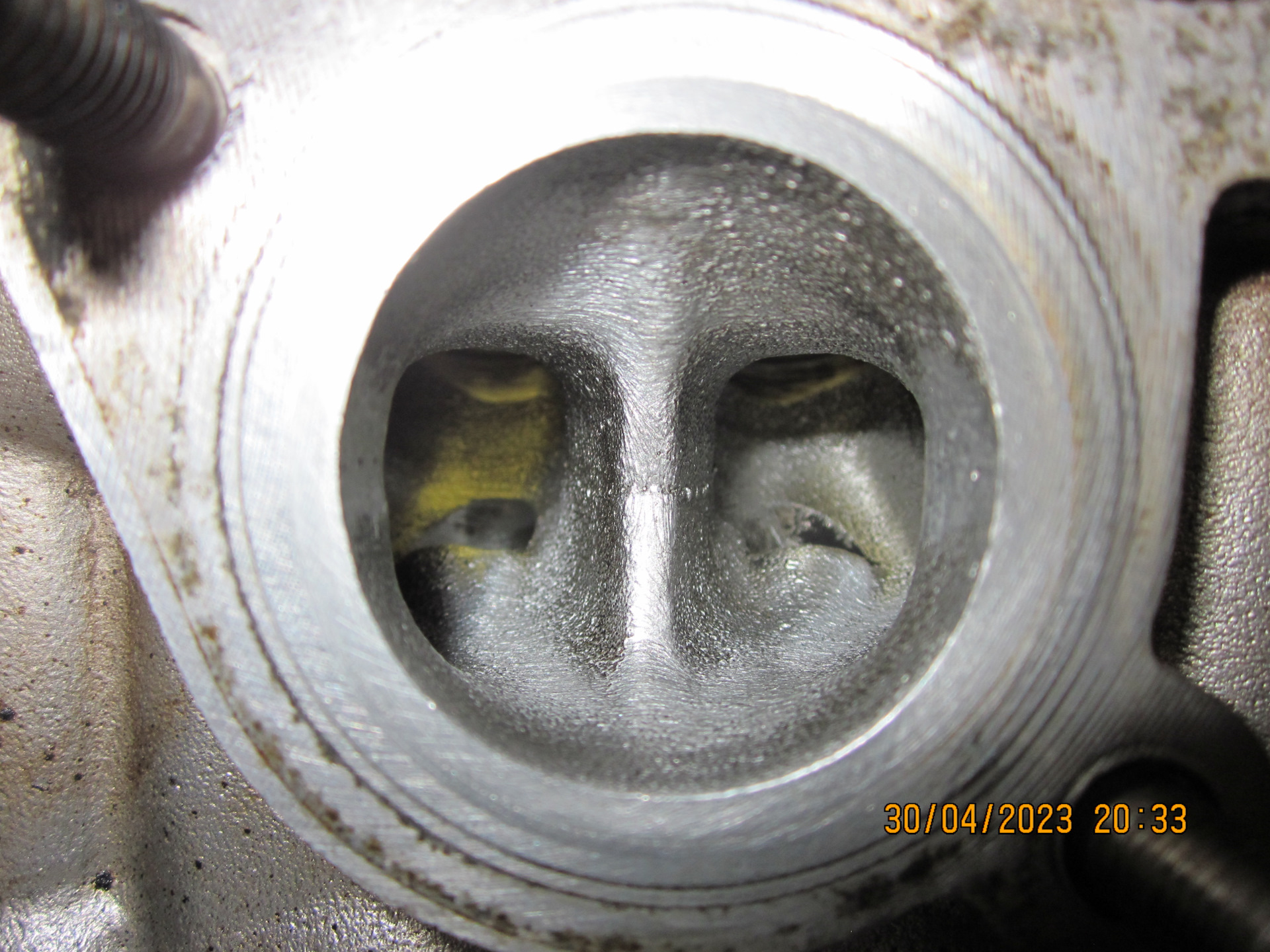 До притирки ширина фасок сёдел была примерно по 1,9мм, после притирки расширилась примерно до 2,0мм, многовато конечно, но иначе не удавалось вывести пятна на сёдлах. Ладно, до капиталки stage-2 глядишь походит, а там уже будем править фаски сёдел на станке.