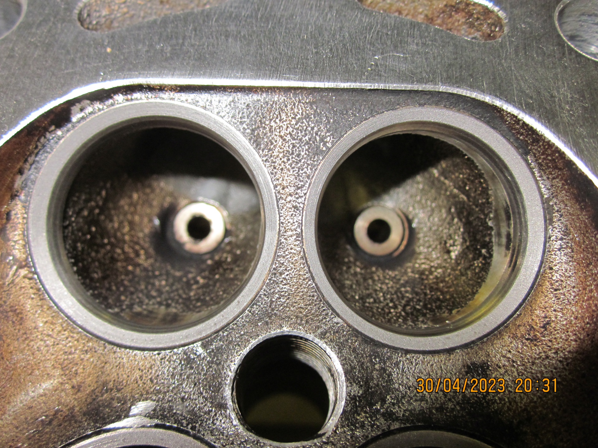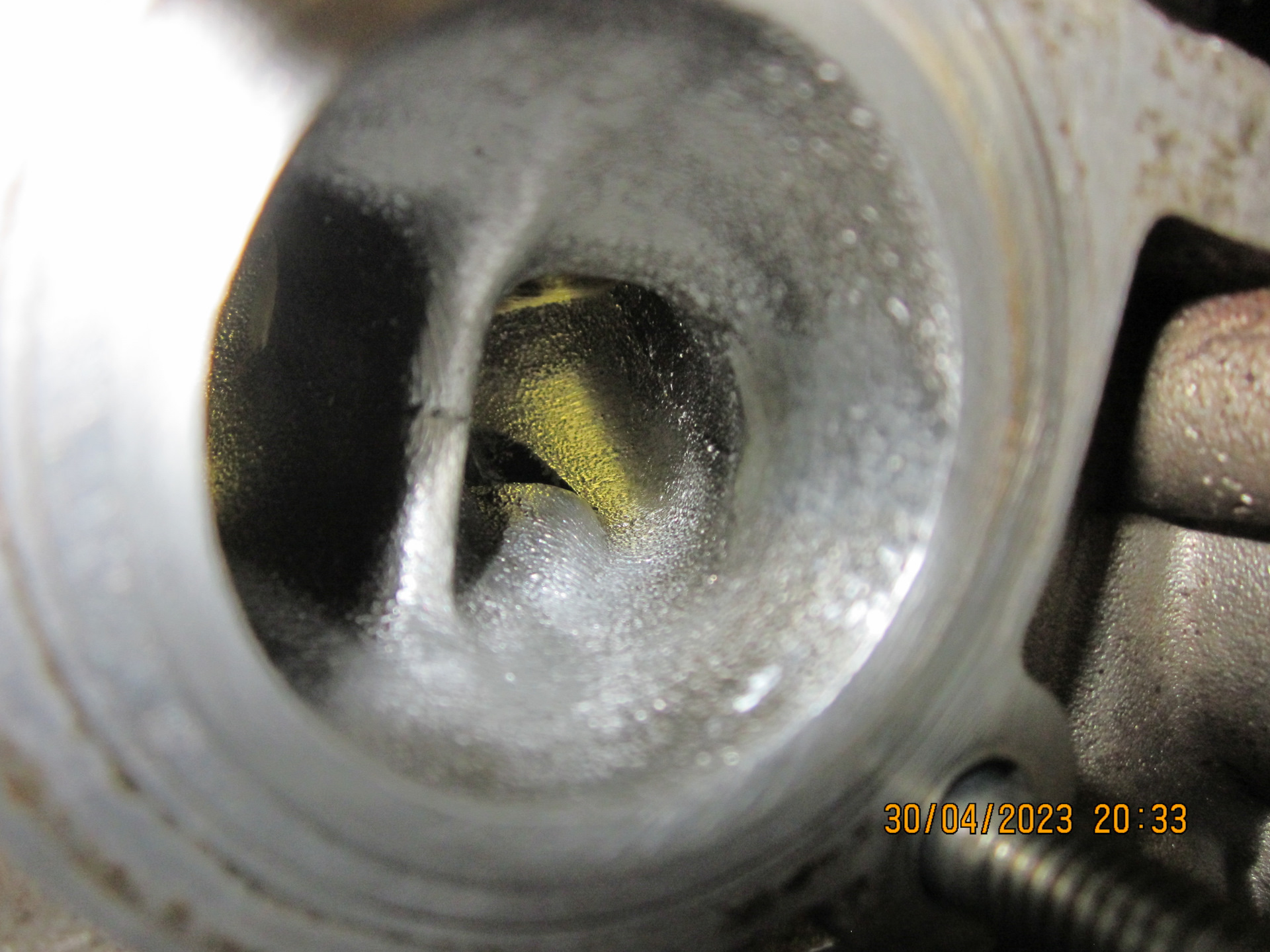 Инфа интересная, но есть нюансы. Во-первых мне трудно представить зазор между телом ГБЦ и направляющей, через который сможет просочиться много масла в единицу времени, тем более что масло в той зоне находится не под давлением. Во-вторых, масло, которое мы увидели при эндоскопии в районе ДЗ не могло туда попасть с направляющих, разве что через ВКГ.